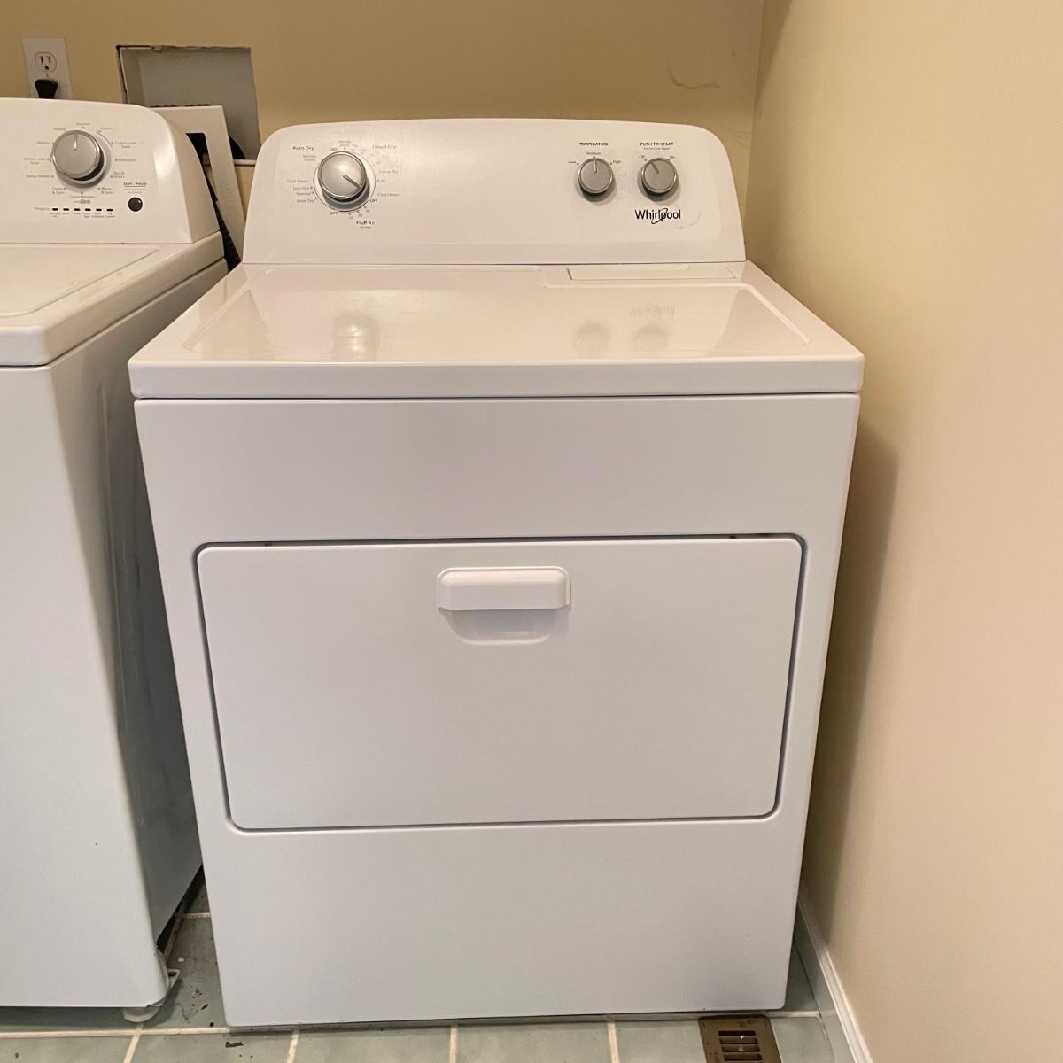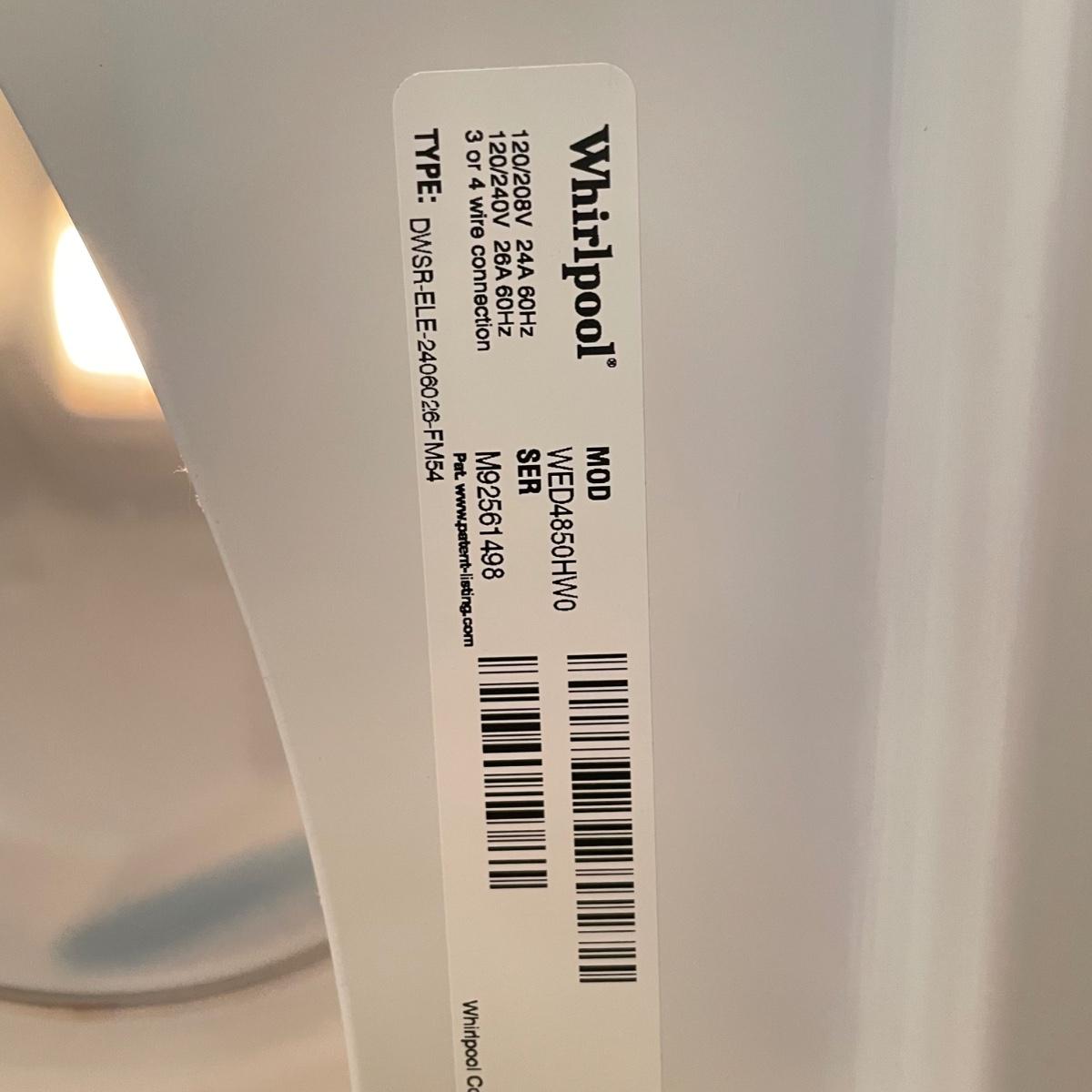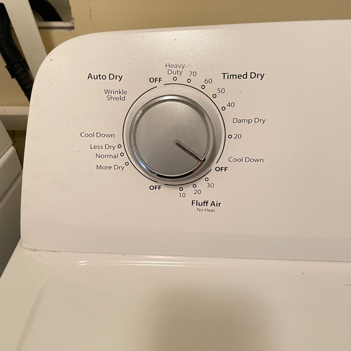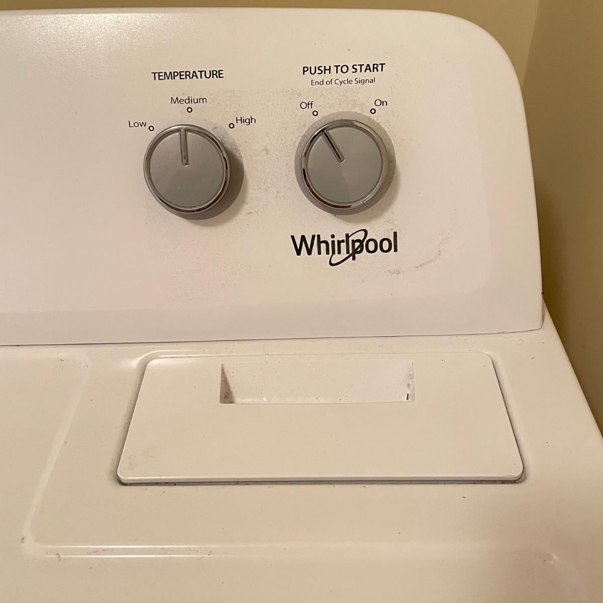 Standard Whirlpool dryer with three timed settings and three temperatures. Dryer measures 29” x 26” x 43”H. Dryer turned on when plugged in. See images. Local pick up only. Winning bidder must bring assistance to help move and load this item due to its weight and/or size. Item is near garage for easy loading.