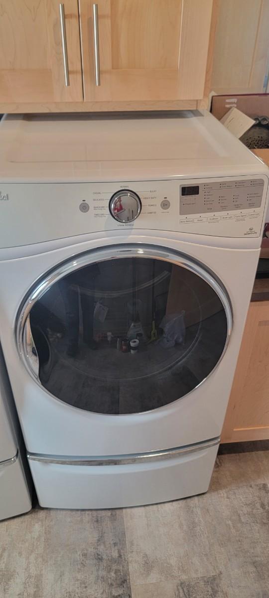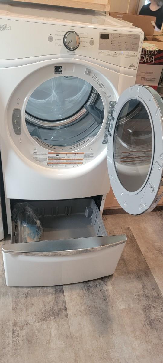 Whirlpool dryer with matching riser. Energy Star mod WED92HEFW1