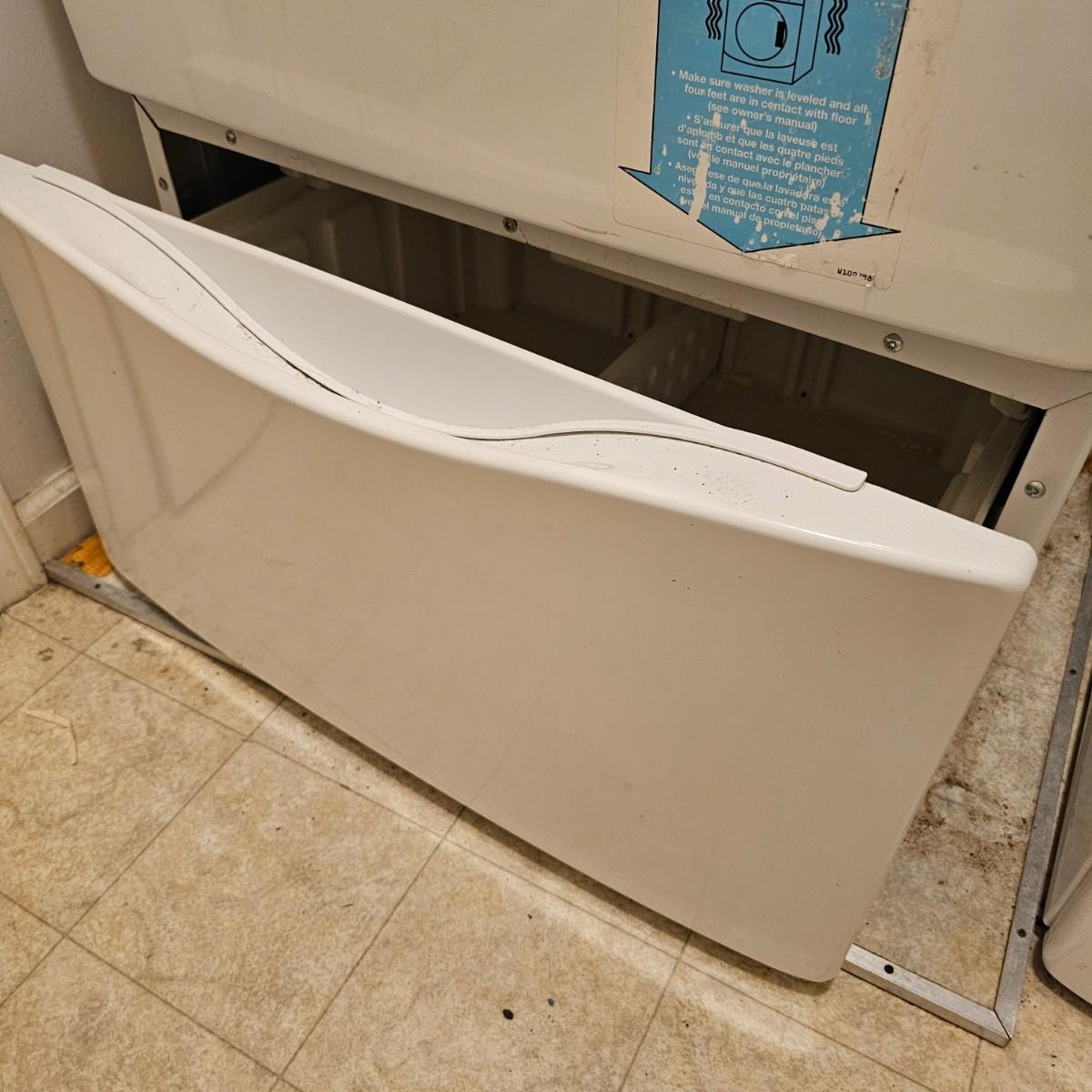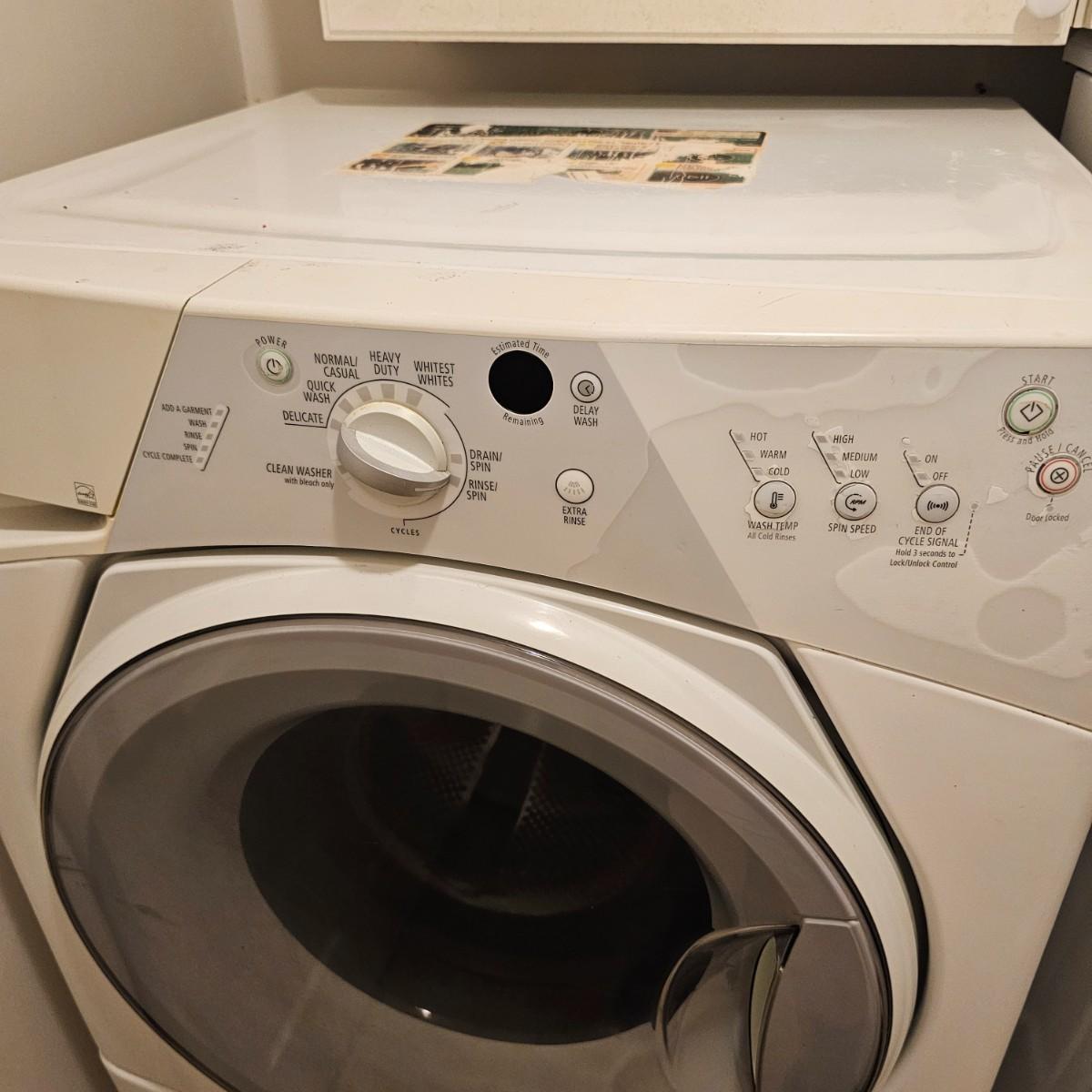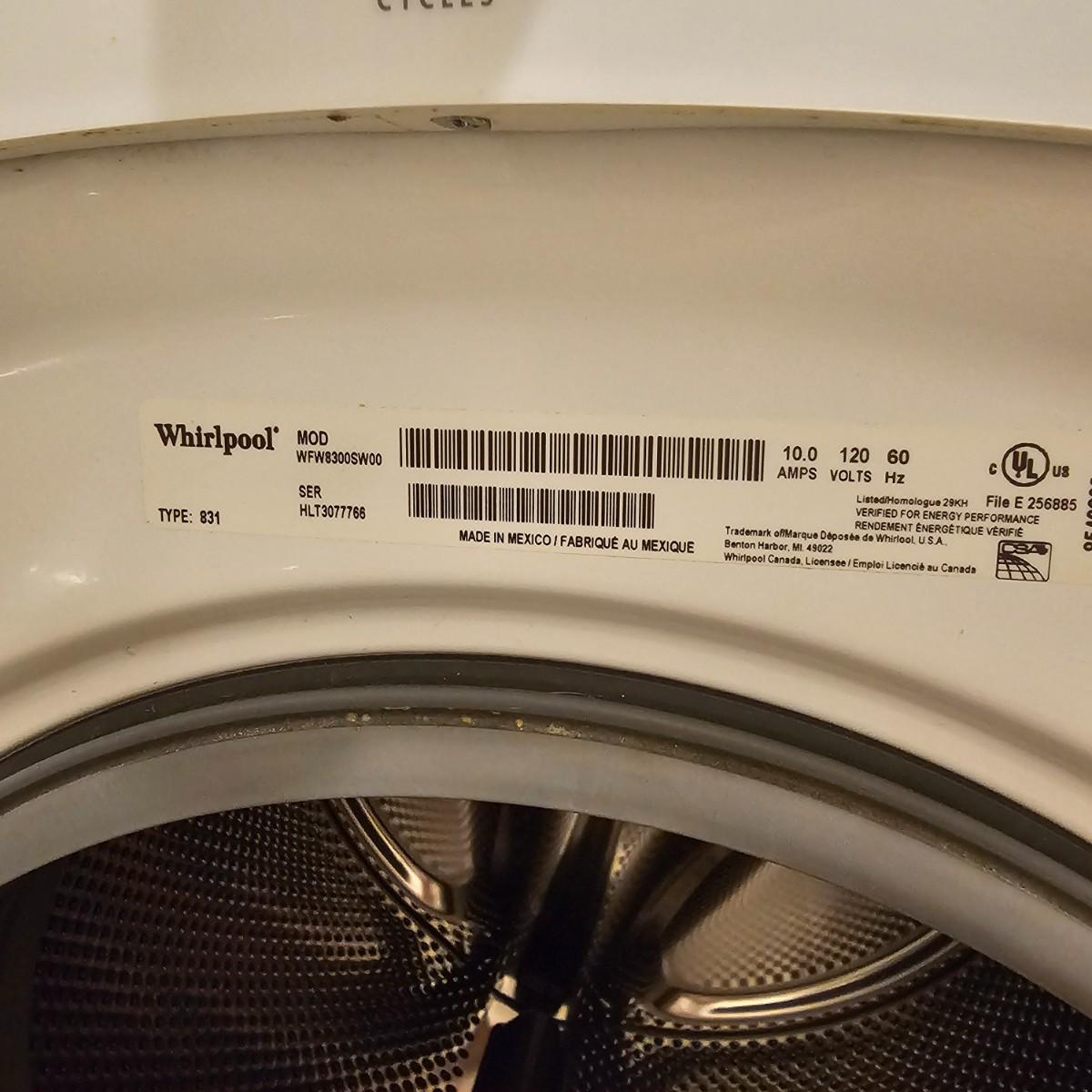 Front load Whirlpool Duet Sport model washer. Multiple cycles, temperatures and load sizes. Clear front door window. Washer measures 27" x 28" x 50"H and includes the optional storage pedestal drawer at the bottom. Item powered on when plugged in and turned on. See photos for details. Local pickup only. Winning bidder must bring assistance to help move and load this item due to its weight and/or size. Winner will also be responsible for disconnecting washer before move.