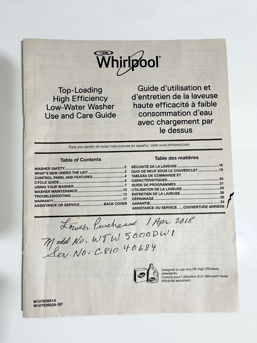 WHIRLPOOL ~ 2018 High Efficiency Top Load Washing Machine