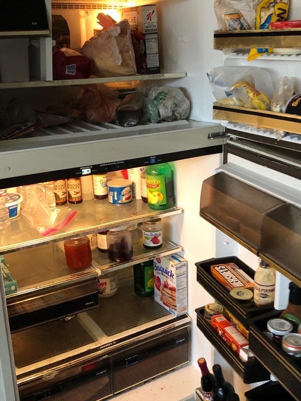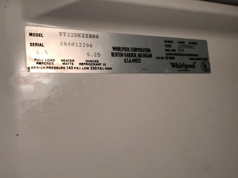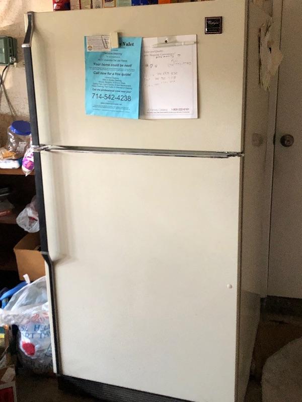 Whirlpool fridge. Works. Freezer top, fridge bottom. Food not included and will be removed before pick up.