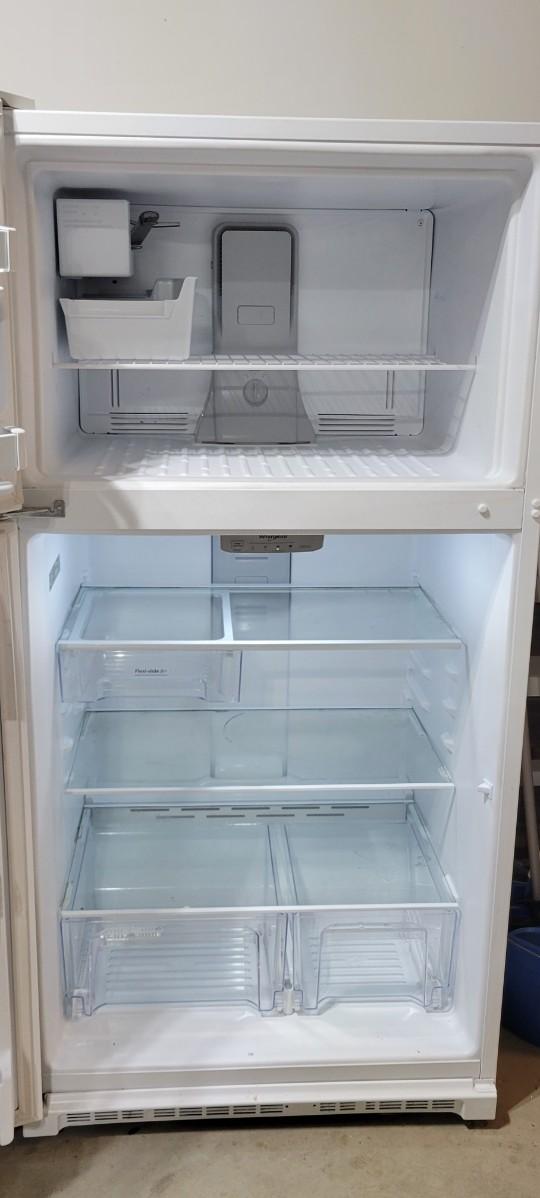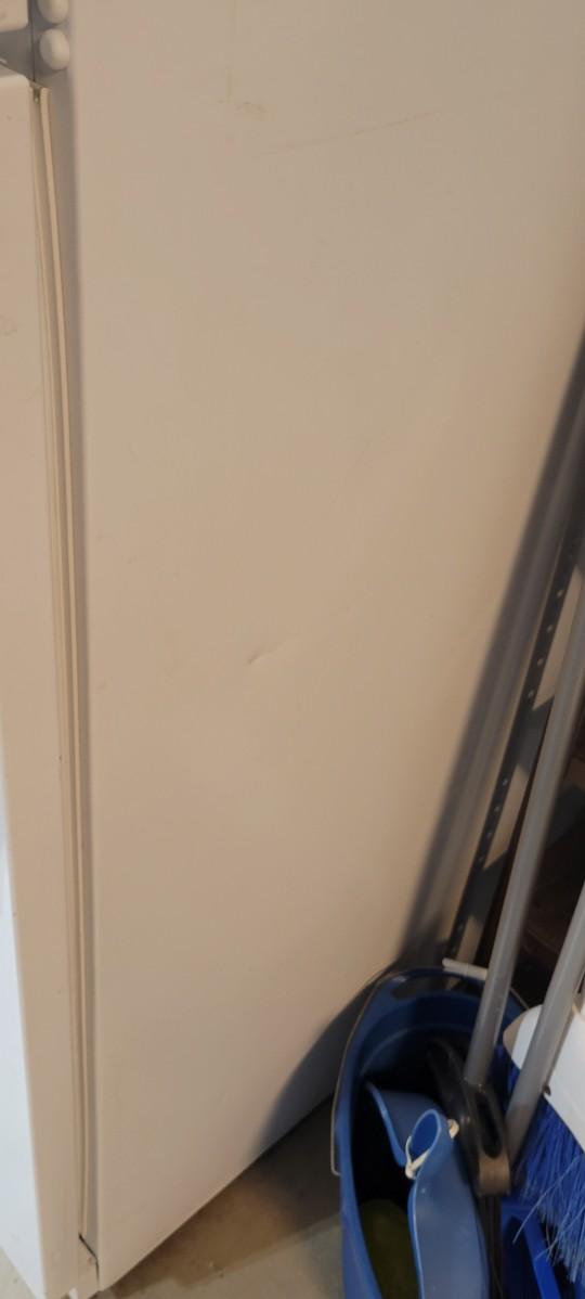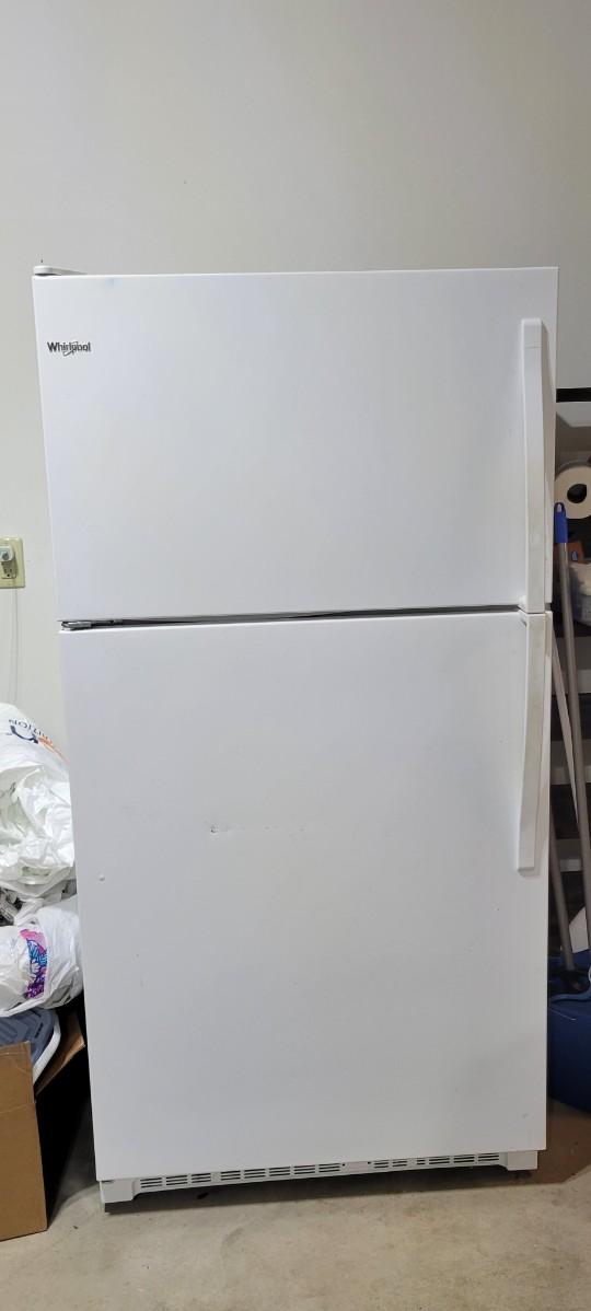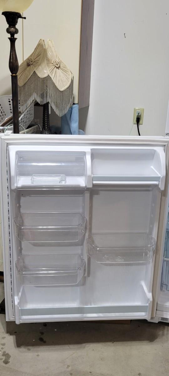 We believe this is a 20c.f. unit. It is clean and in great working order. Door seals are in great shape. Ice maker. Does have a small ding on the side as seen in the last photo.