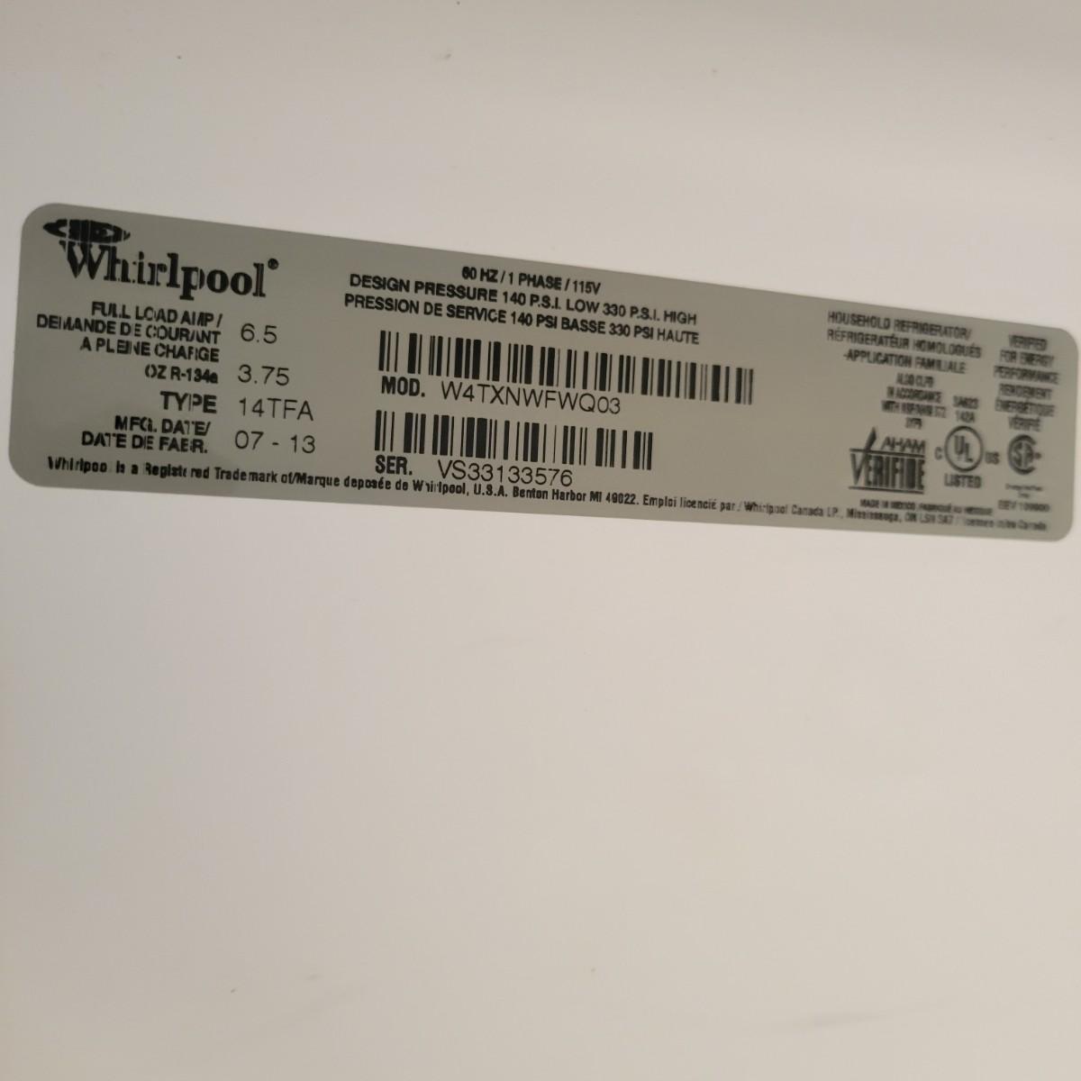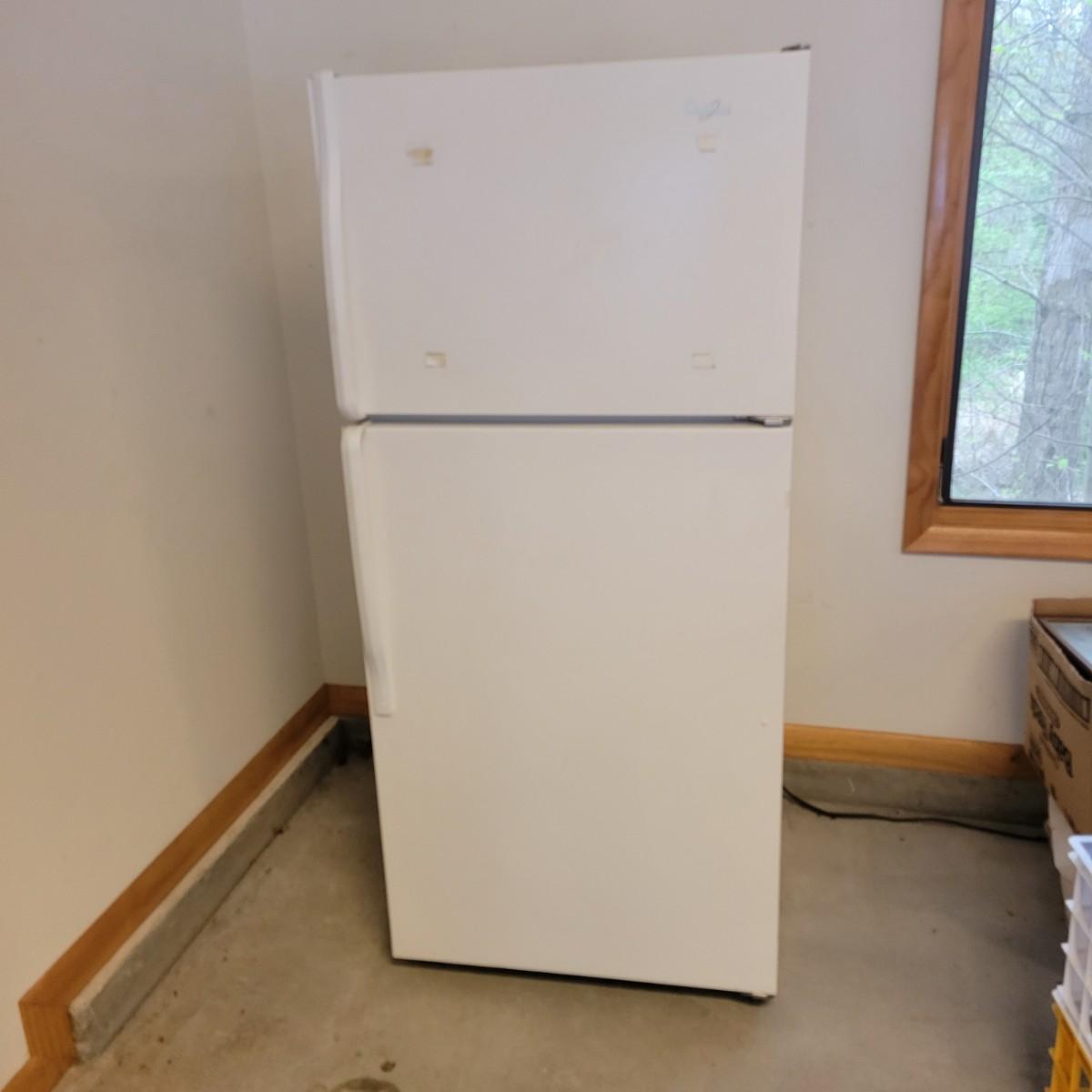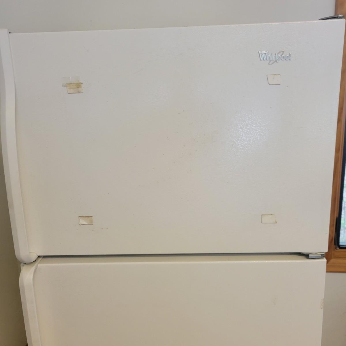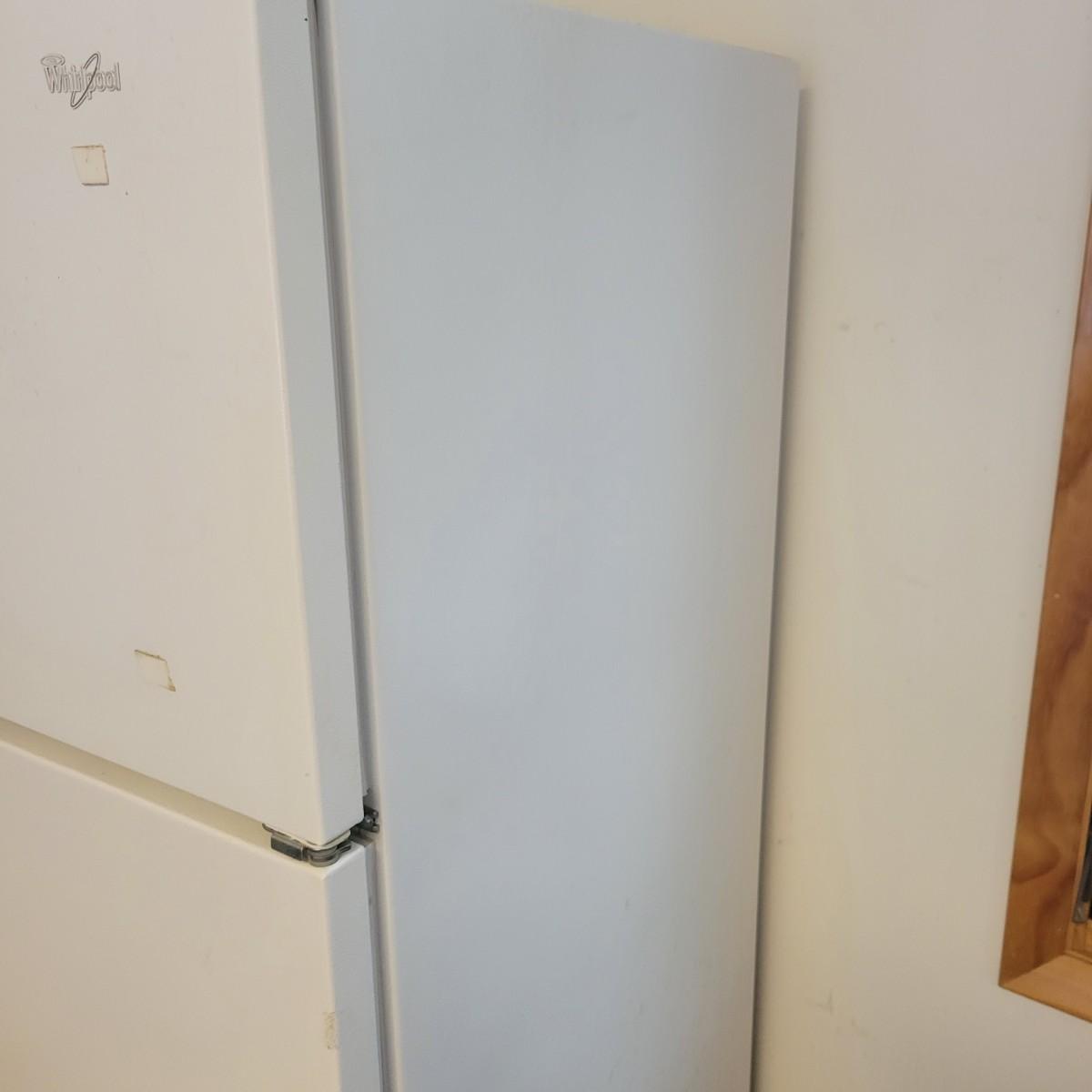 A Whirlpool refrigerator and freezer in working order. Freezer is very cold and the fridge seems to be at a proper temperature. There are some minor blemishes and it is a little dirty. Measures approximately 28" x 29.5" x 63"H. Local pickup only. Winning bidder must bring assistance to help move and load this item due to its weight and/or size.