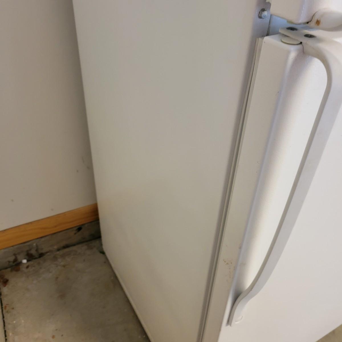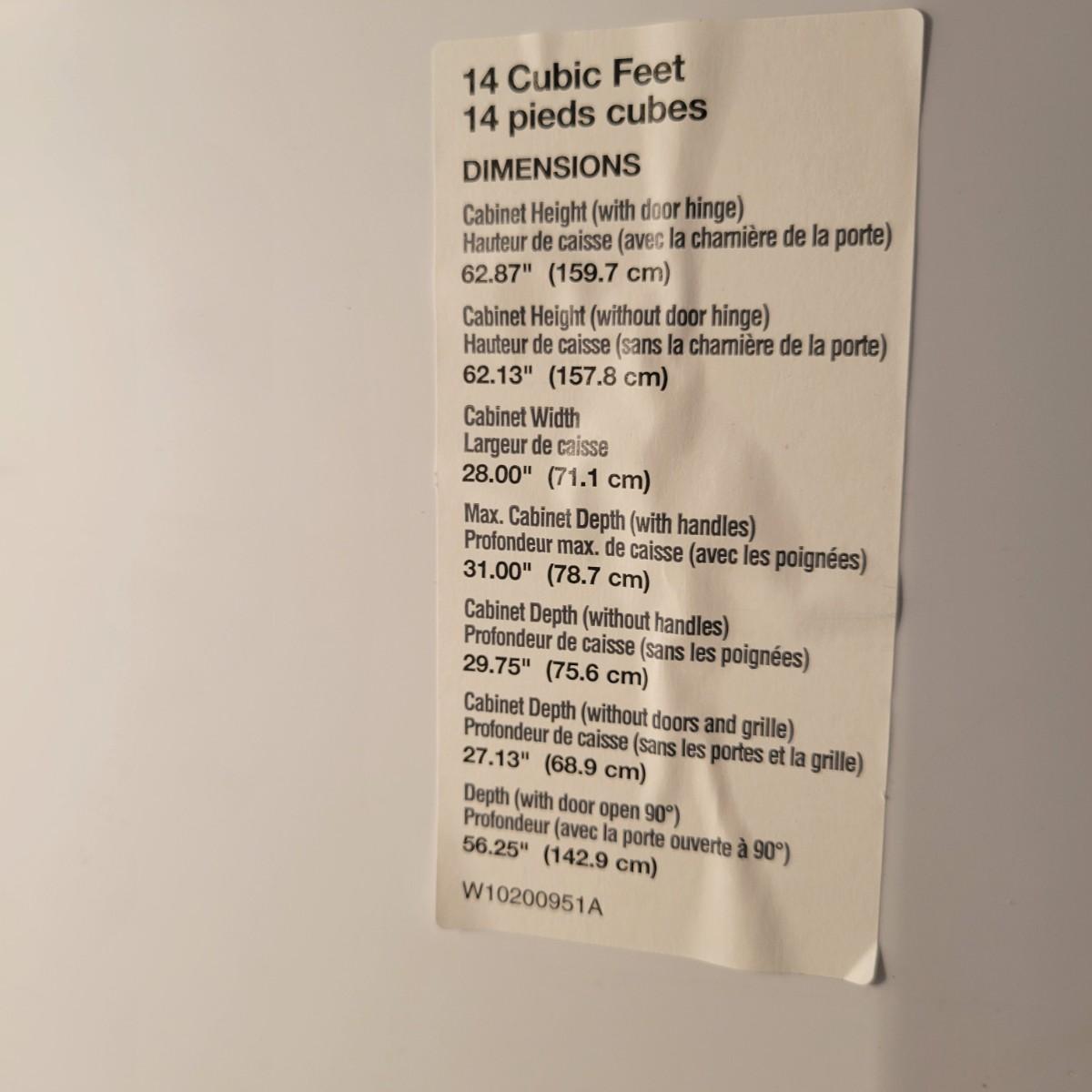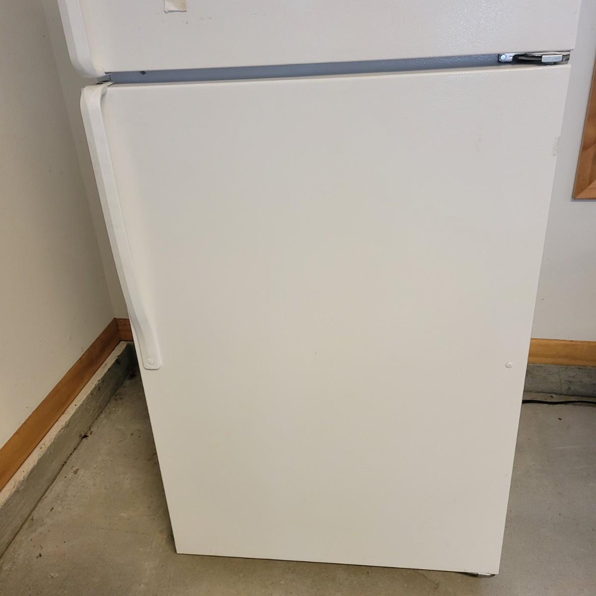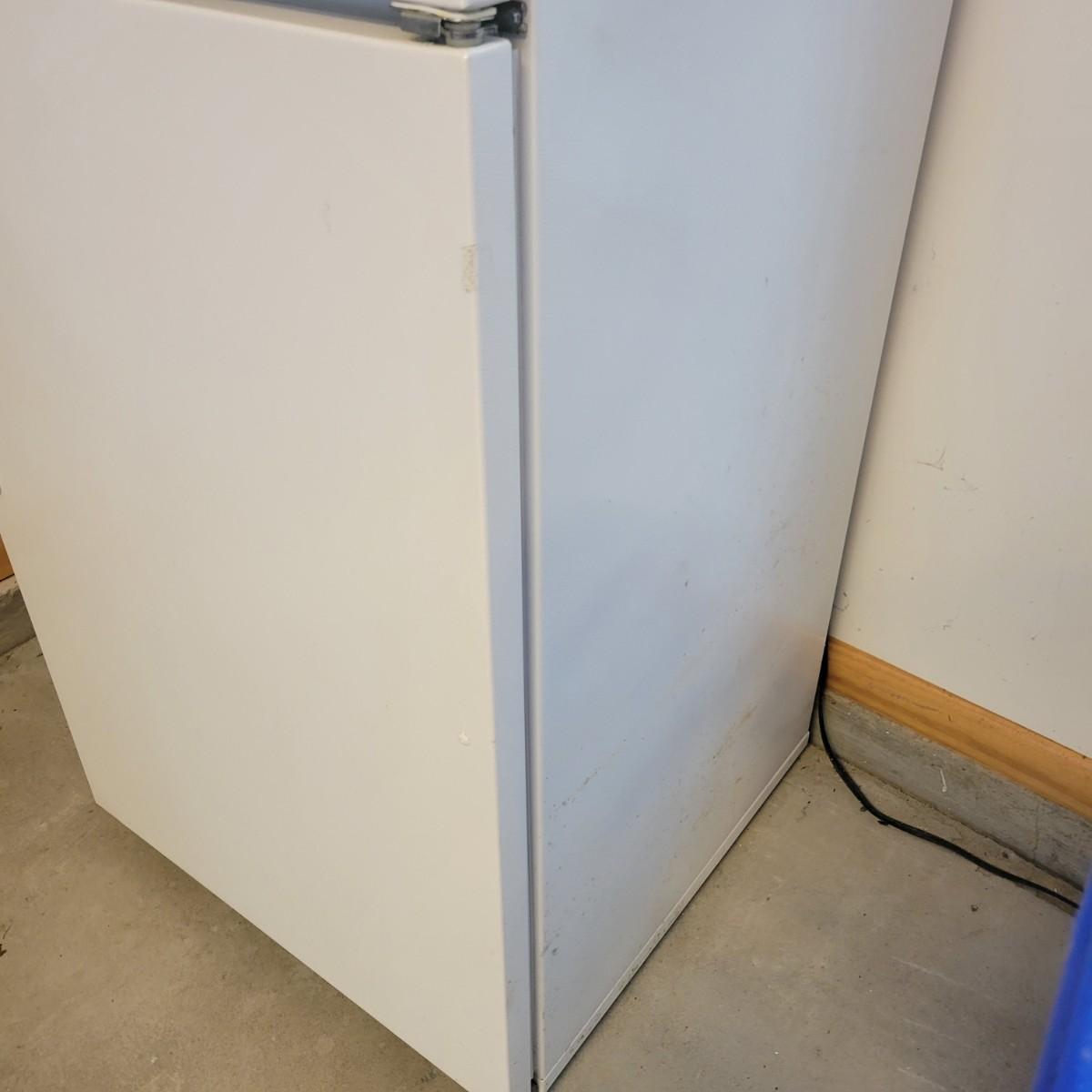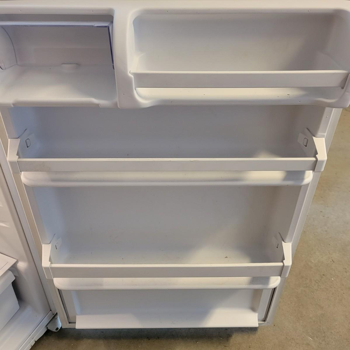 A Whirlpool refrigerator and freezer in working order. Freezer is very cold and the fridge seems to be at a proper temperature. There are some minor blemishes and it is a little dirty. Measures approximately 28" x 29.5" x 63"H. Local pickup only. Winning bidder must bring assistance to help move and load this item due to its weight and/or size.