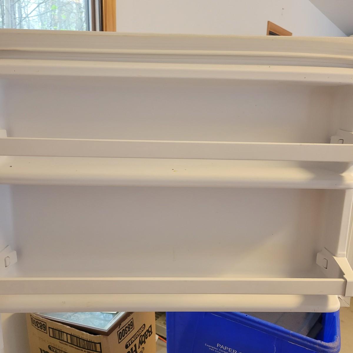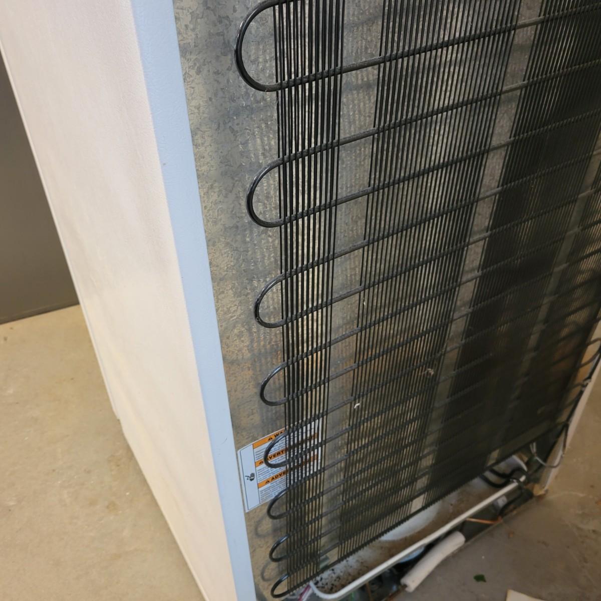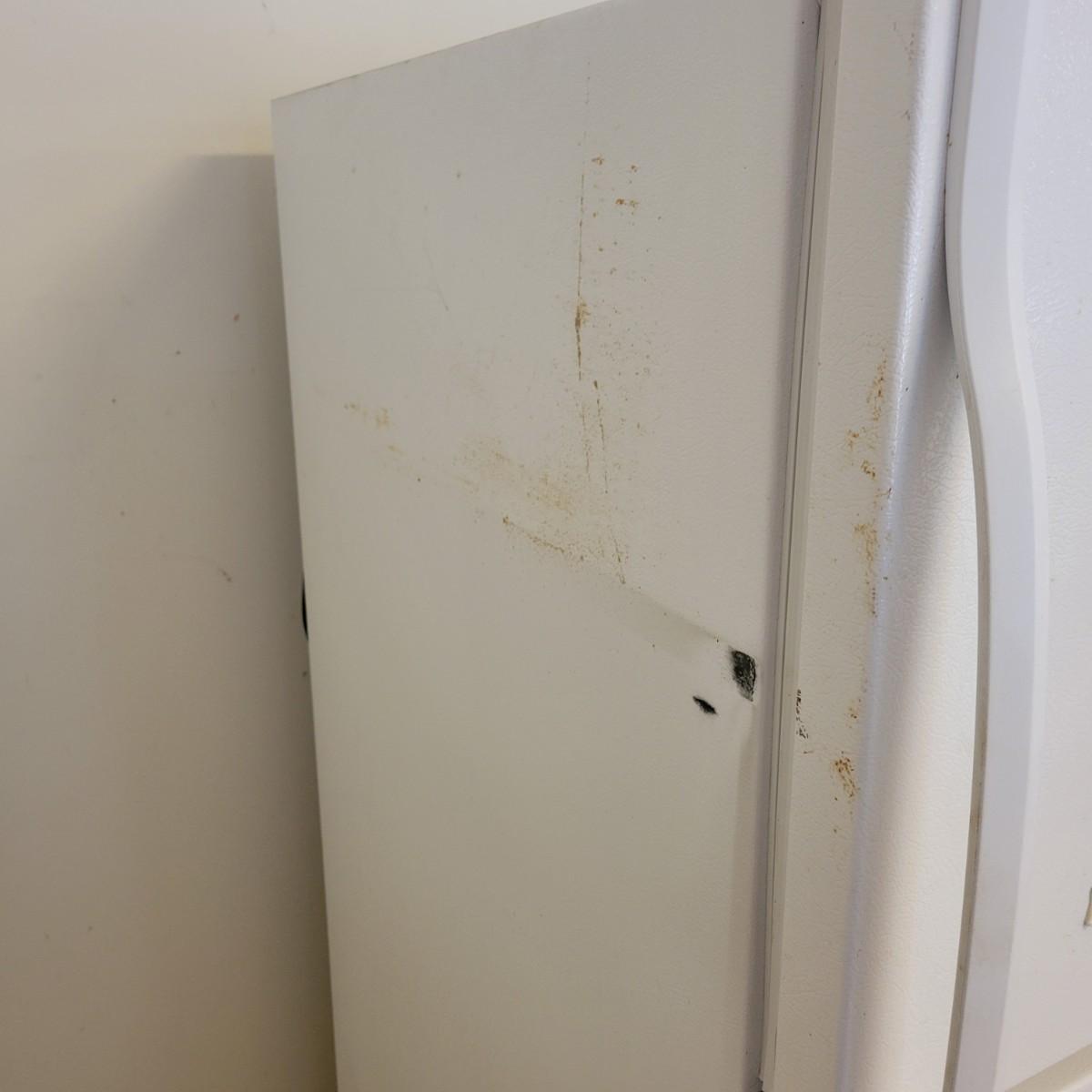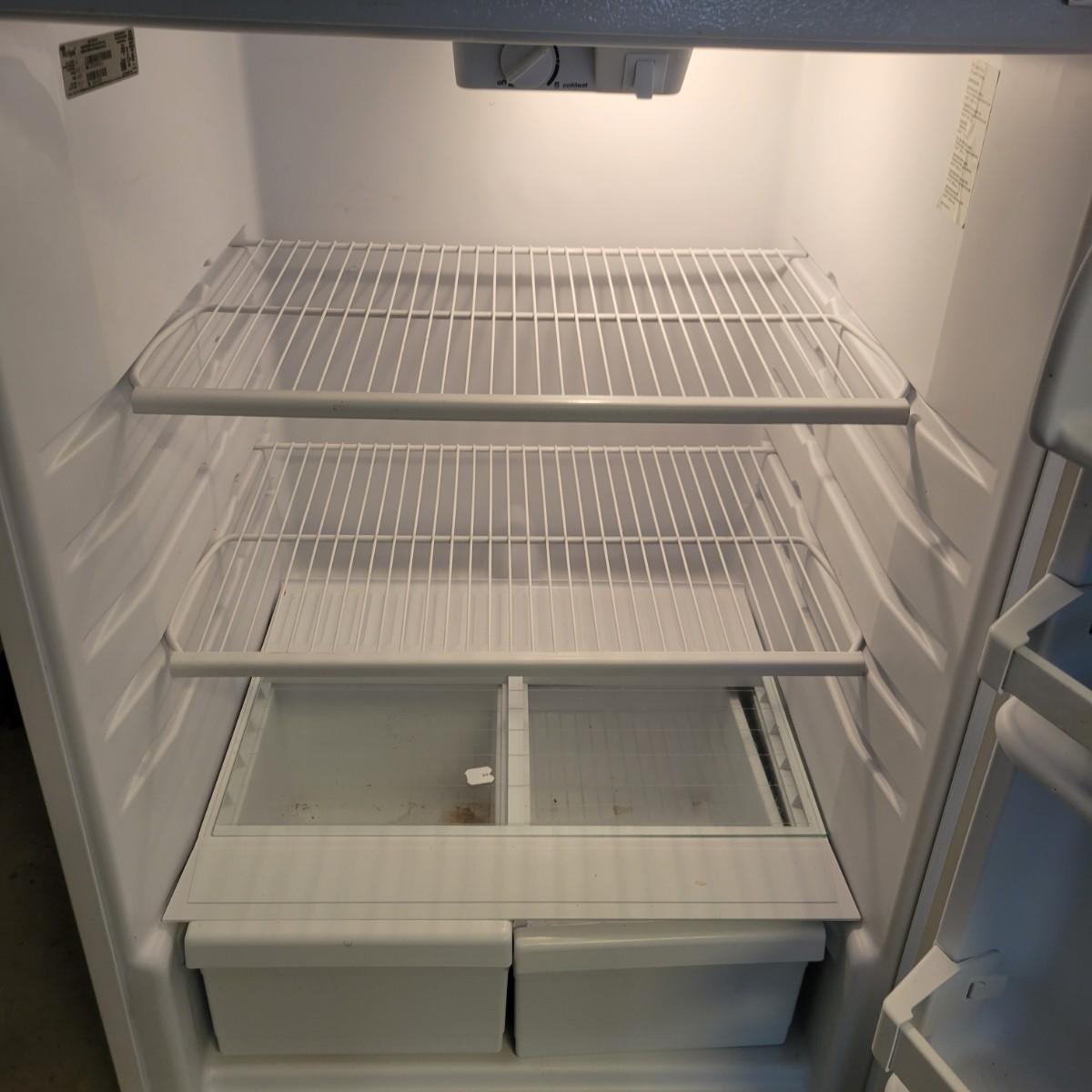 A Whirlpool refrigerator and freezer in working order. Freezer is very cold and the fridge seems to be at a proper temperature. There are some minor blemishes and it is a little dirty. Measures approximately 28" x 29.5" x 63"H. Local pickup only. Winning bidder must bring assistance to help move and load this item due to its weight and/or size.