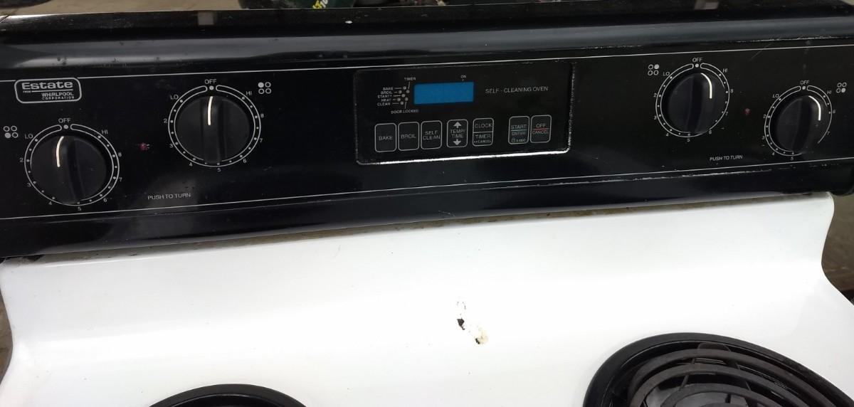 Whirlpool Self-Cleaning 4 Burner Electric Oven clean and was in working condition before it was moved to the auction house