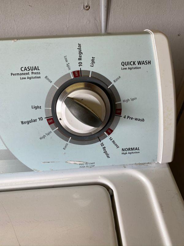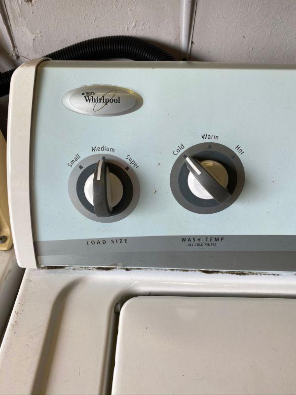 Whirlpool Washing Machine. Adjustable load settings. Signs of age and use. In working condition.