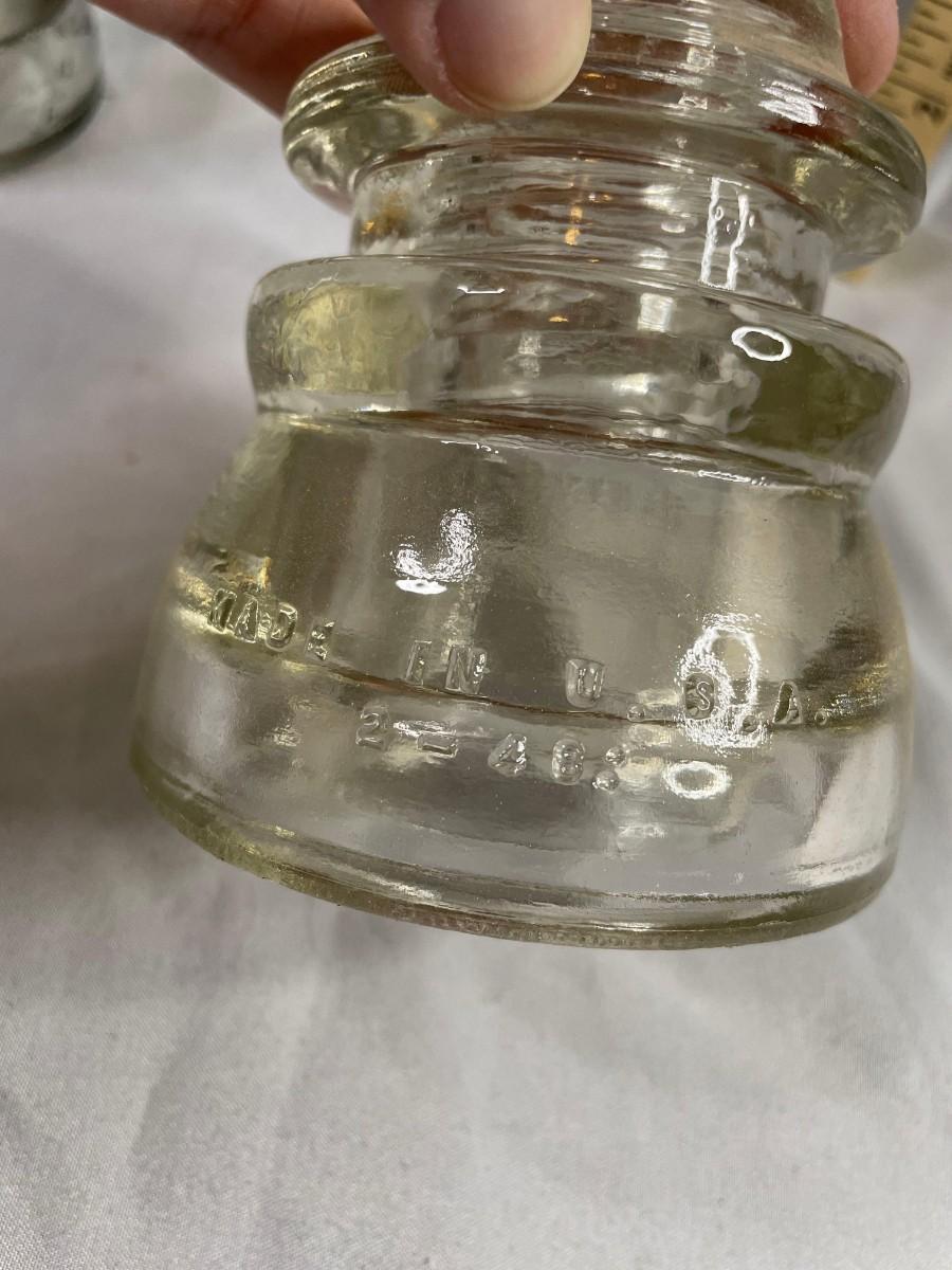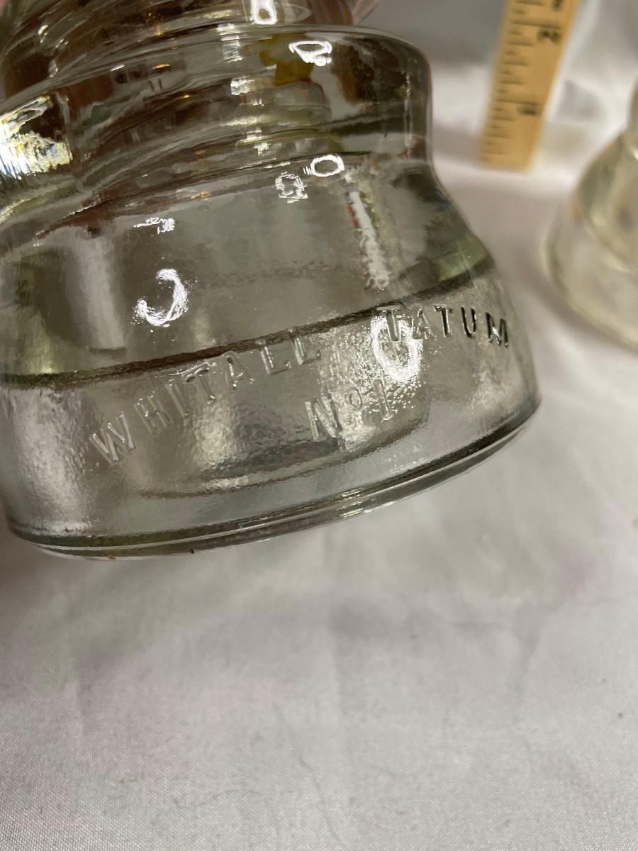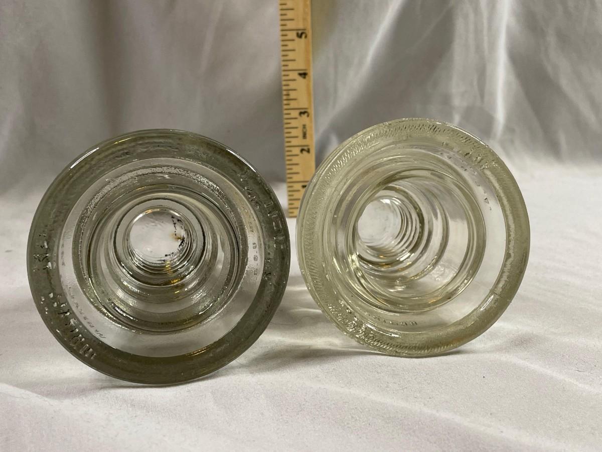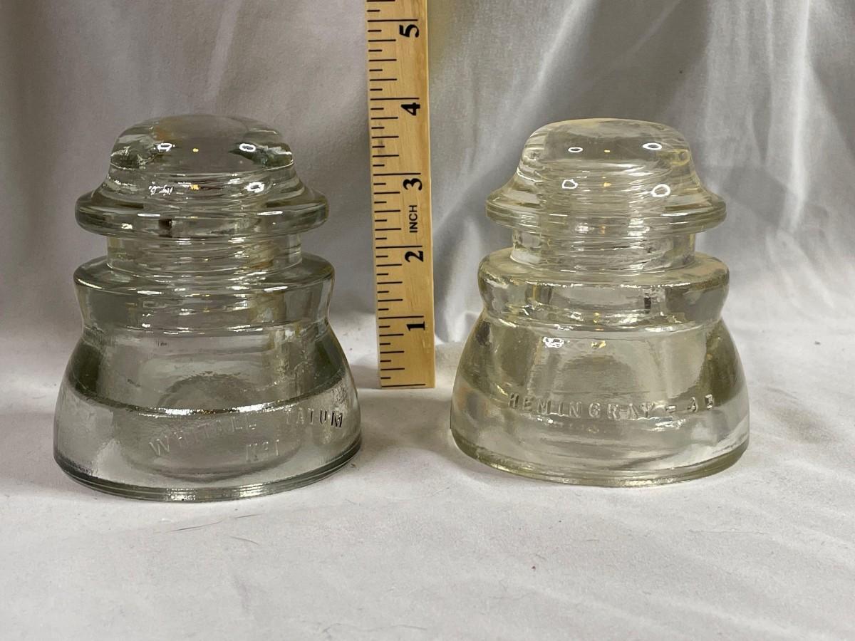 These two are so mint that you would think that they are new. No chips, cracks, or discoloration was found.  I believe that the Whitall is from 1942 and the Hemingray is from 1950.<br />