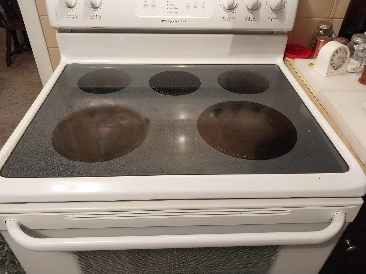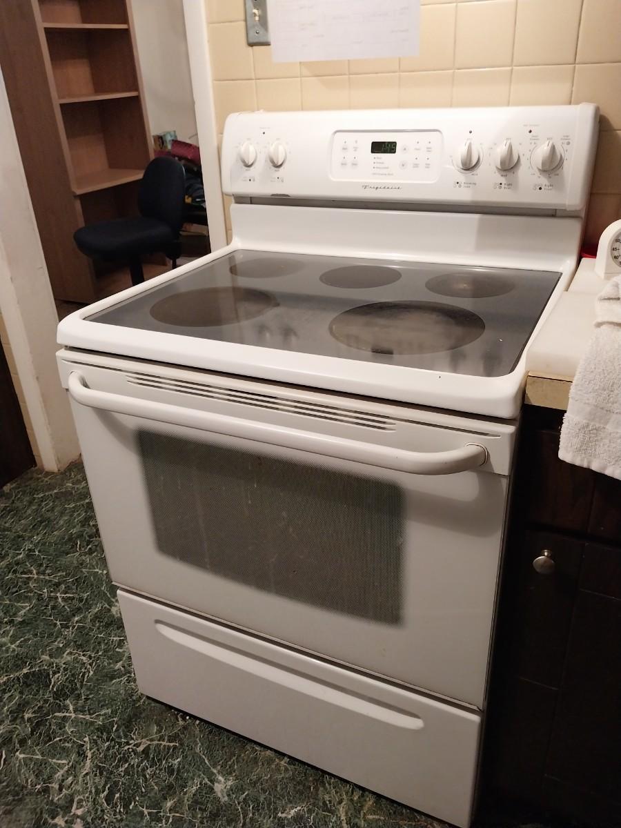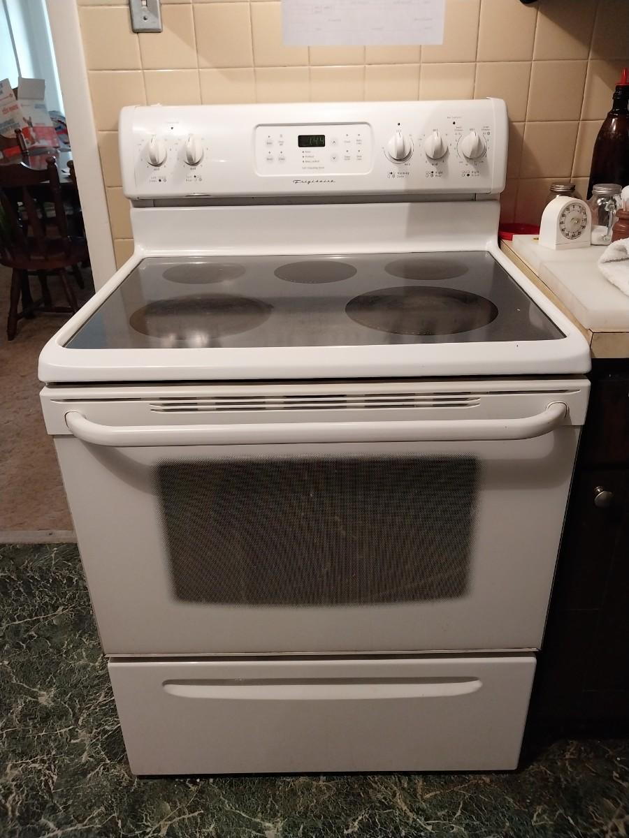 WHITE FRIGIDAIRE ELECTRIC STOVE WITH STORAGE DRAWER