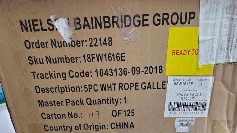 White, 5 Piece Distressed, Rope Hanging Photo Frames Wall Gallery Kit - New