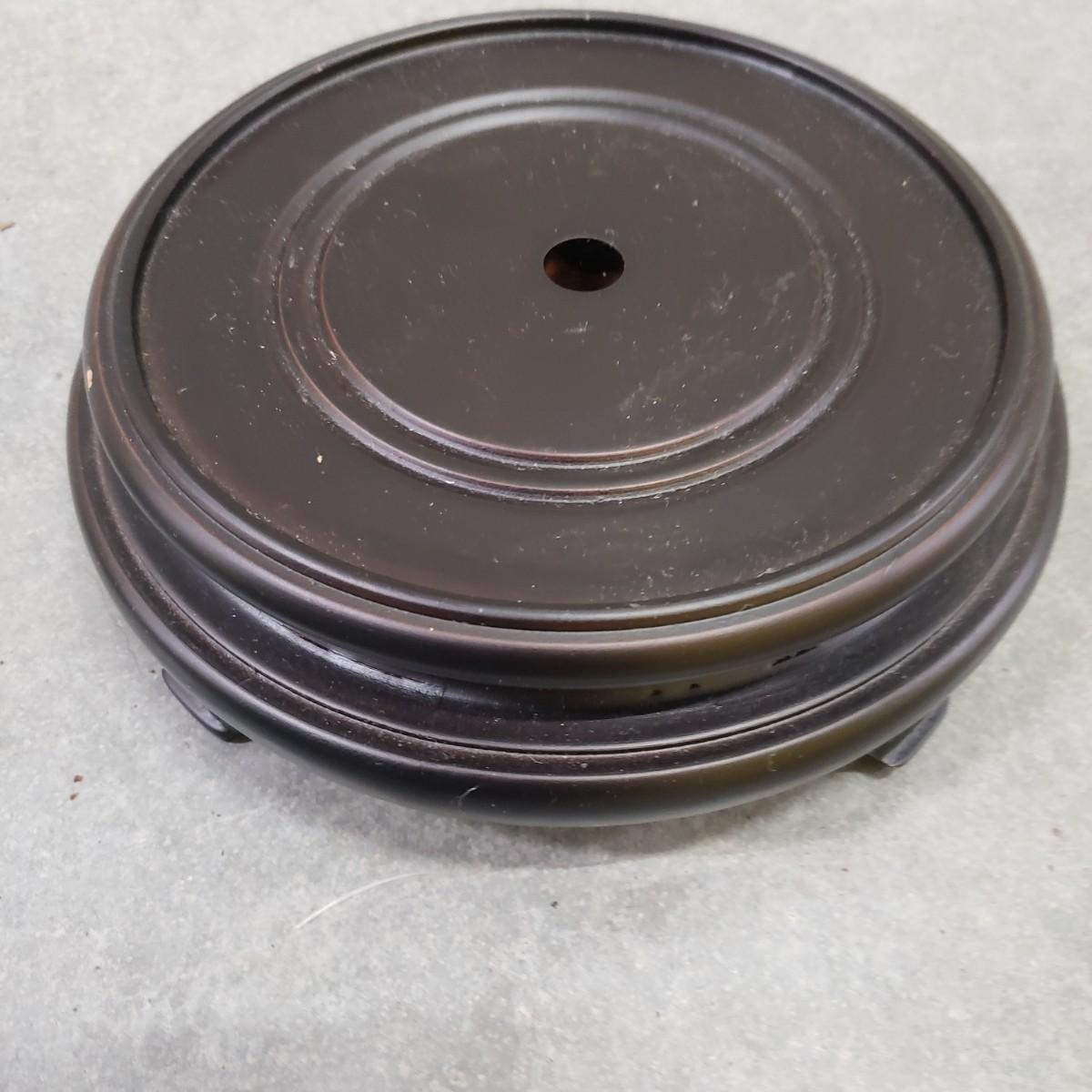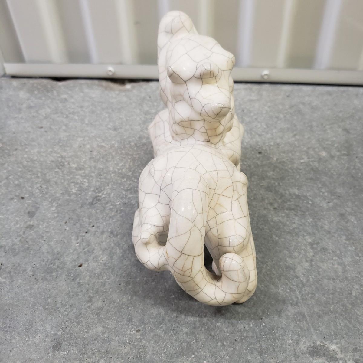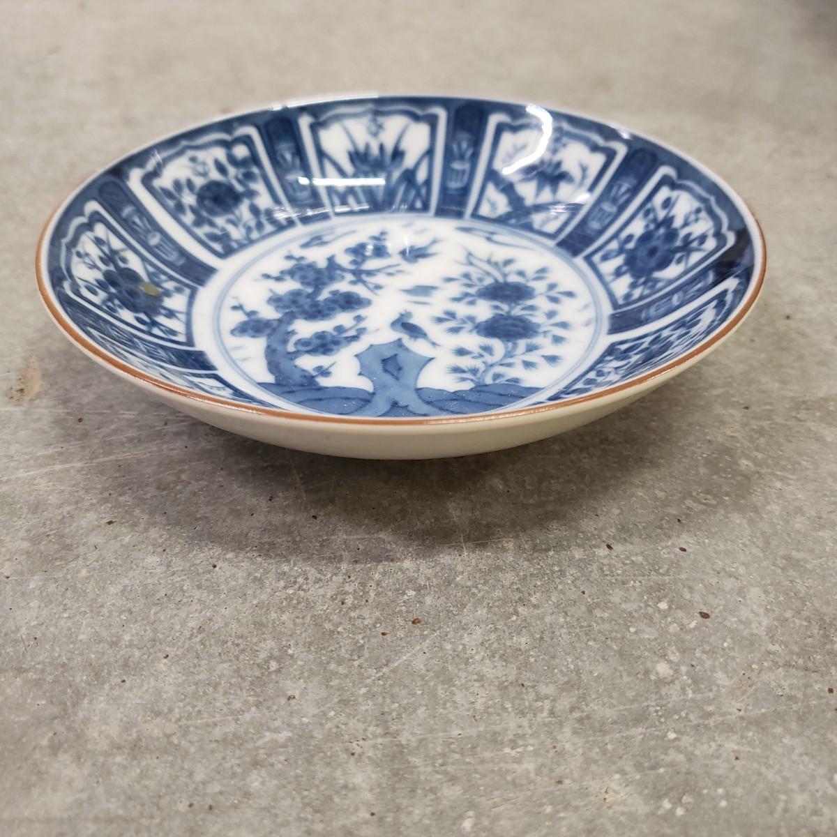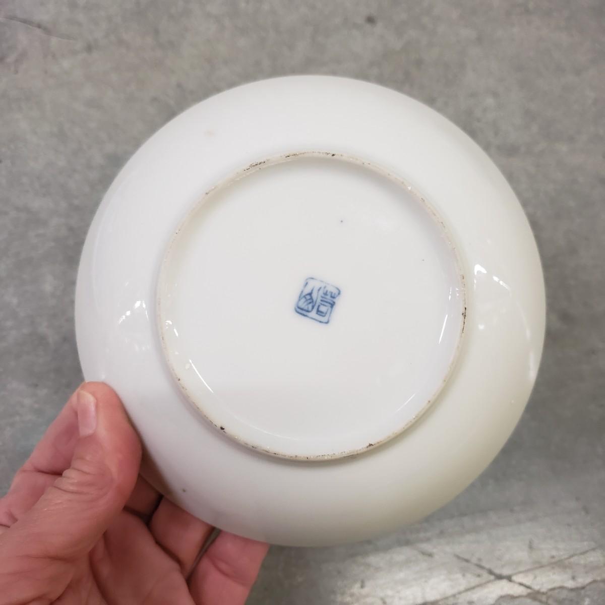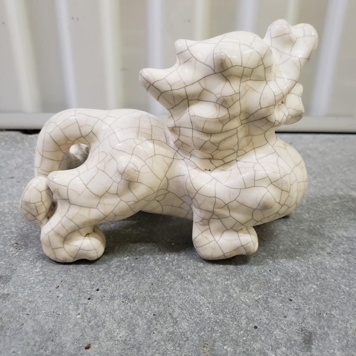 This Asian inspired lot contains six pieces of bowls, figurines and a vase. The large, heavy plate measures 14". The two white matching, ceramic figurines have such delicate features. The largest bowl comes on a wooden, circular stand.