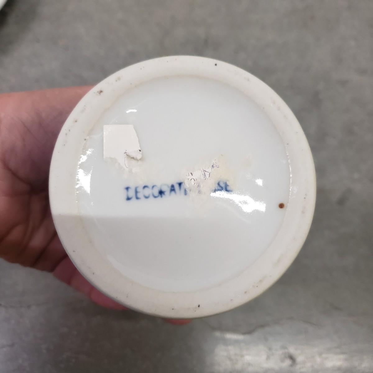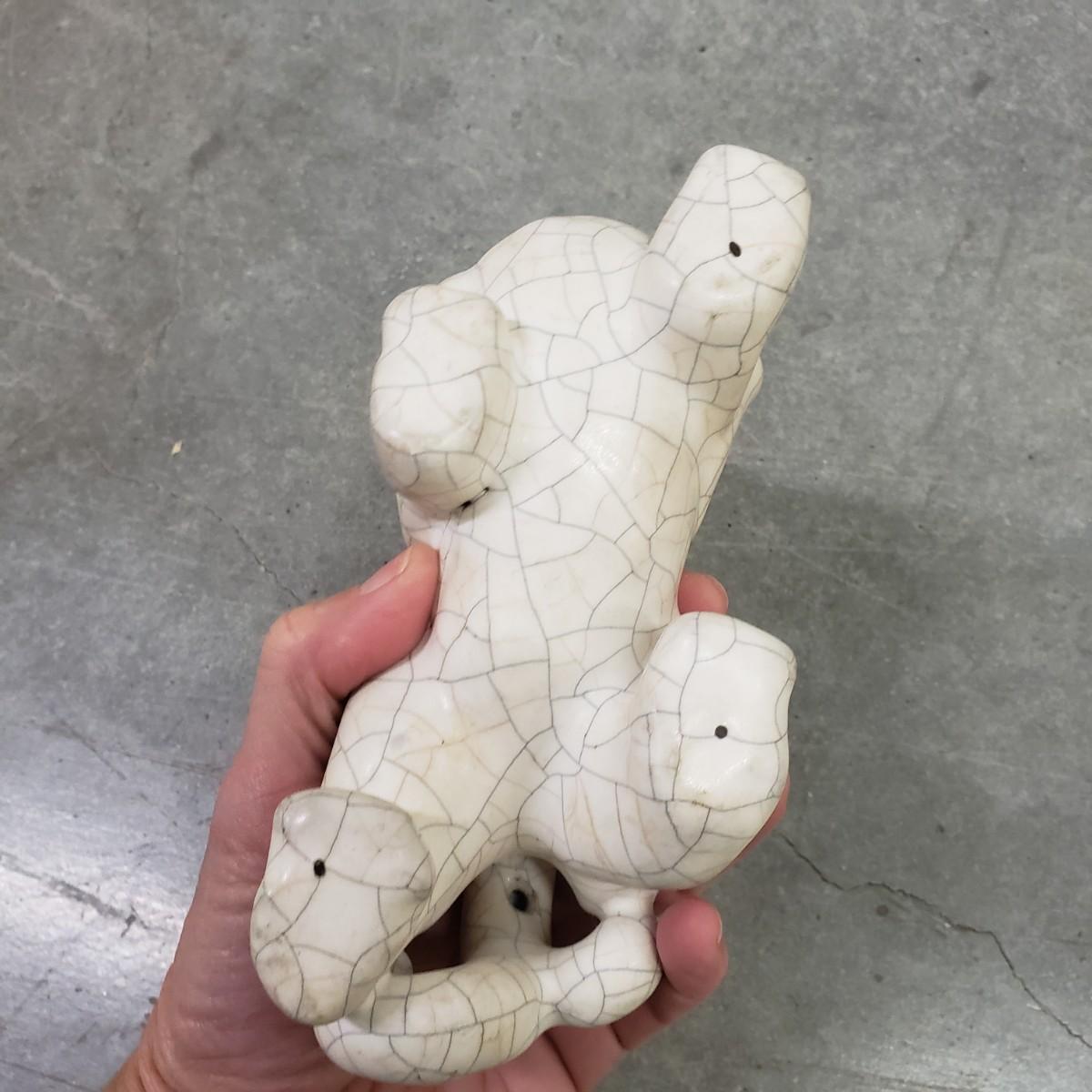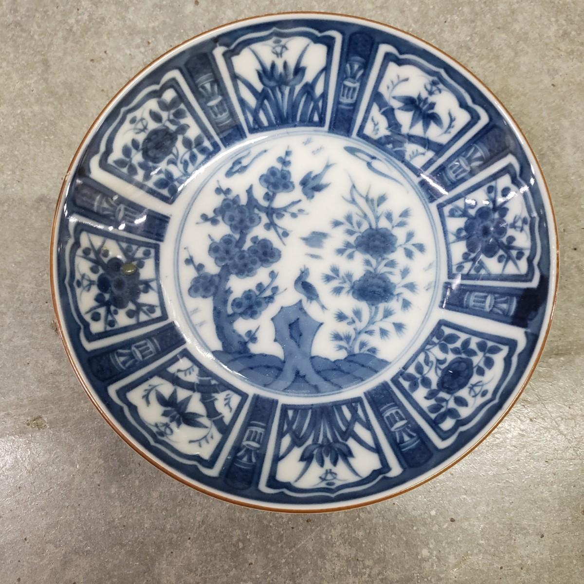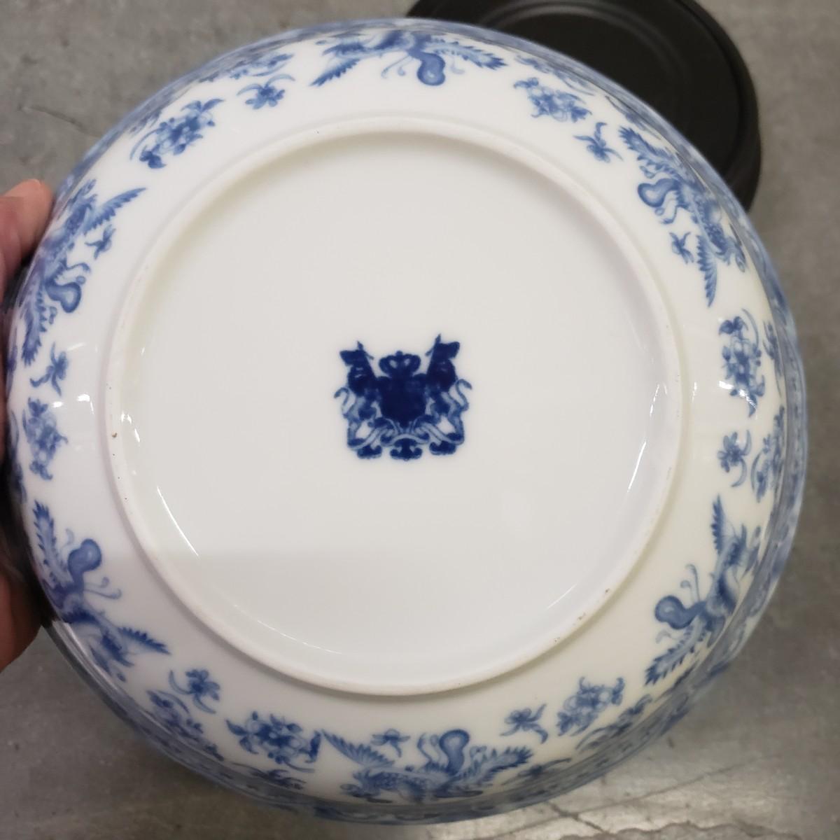 This Asian inspired lot contains six pieces of bowls, figurines and a vase. The large, heavy plate measures 14". The two white matching, ceramic figurines have such delicate features. The largest bowl comes on a wooden, circular stand.