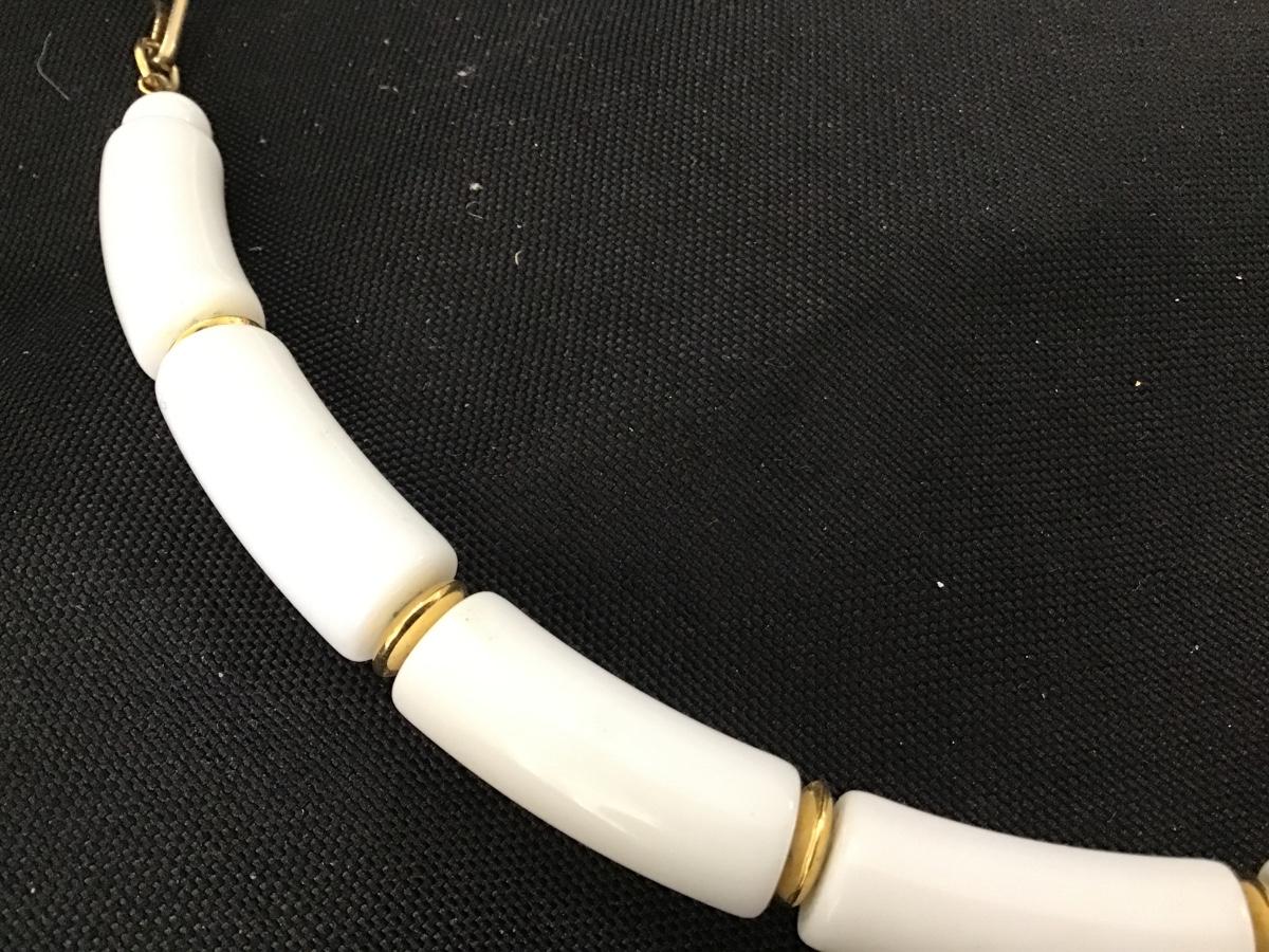 White and Gold Bead Chunky Necklace faux Plastic Vintage