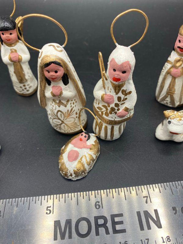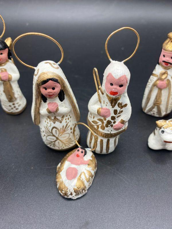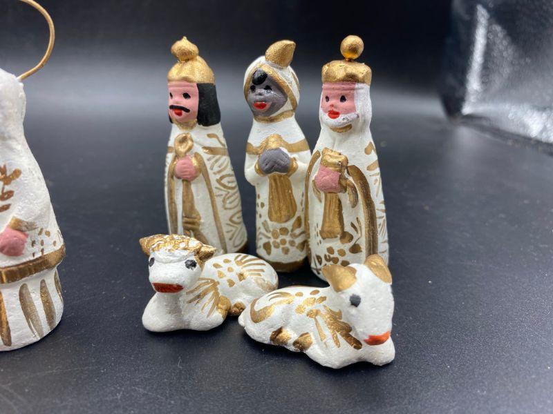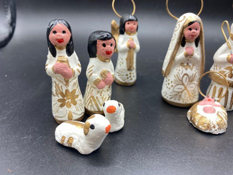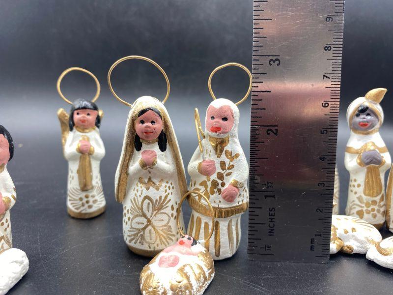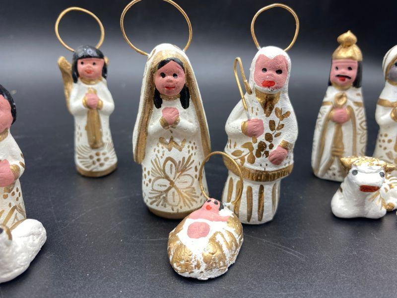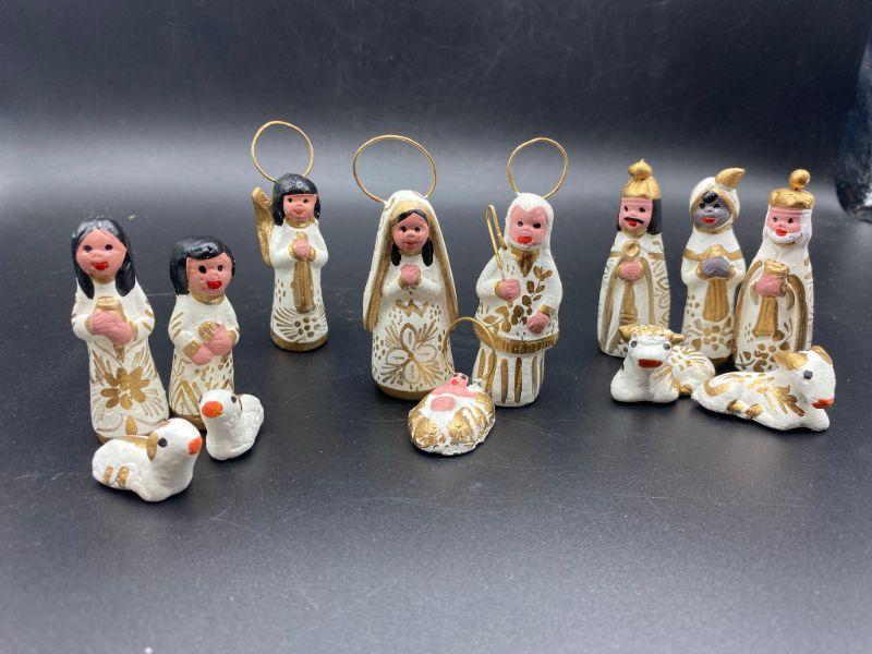 White & Gold hand painted Nativity Scene. Made in Mexico. 13 pieces.