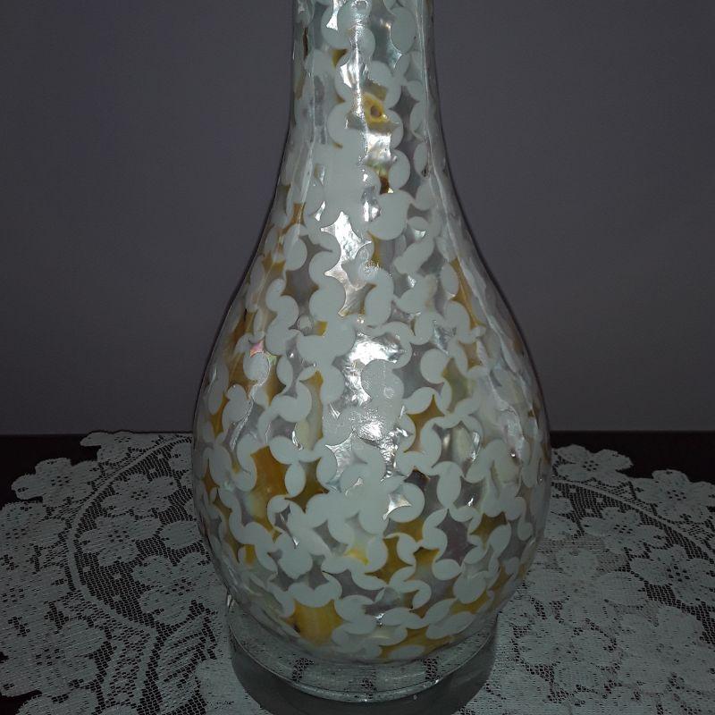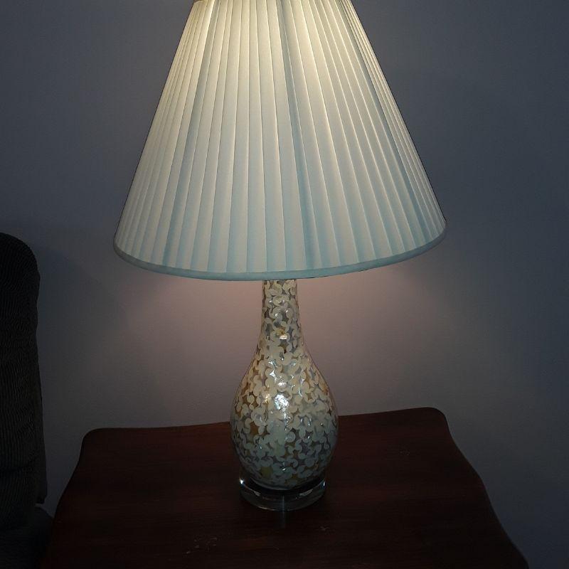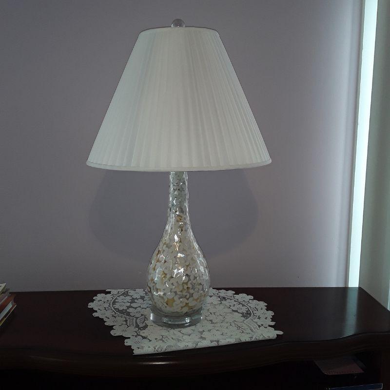 White and Gold Lamp with clear round base - comes with shade 28" tall