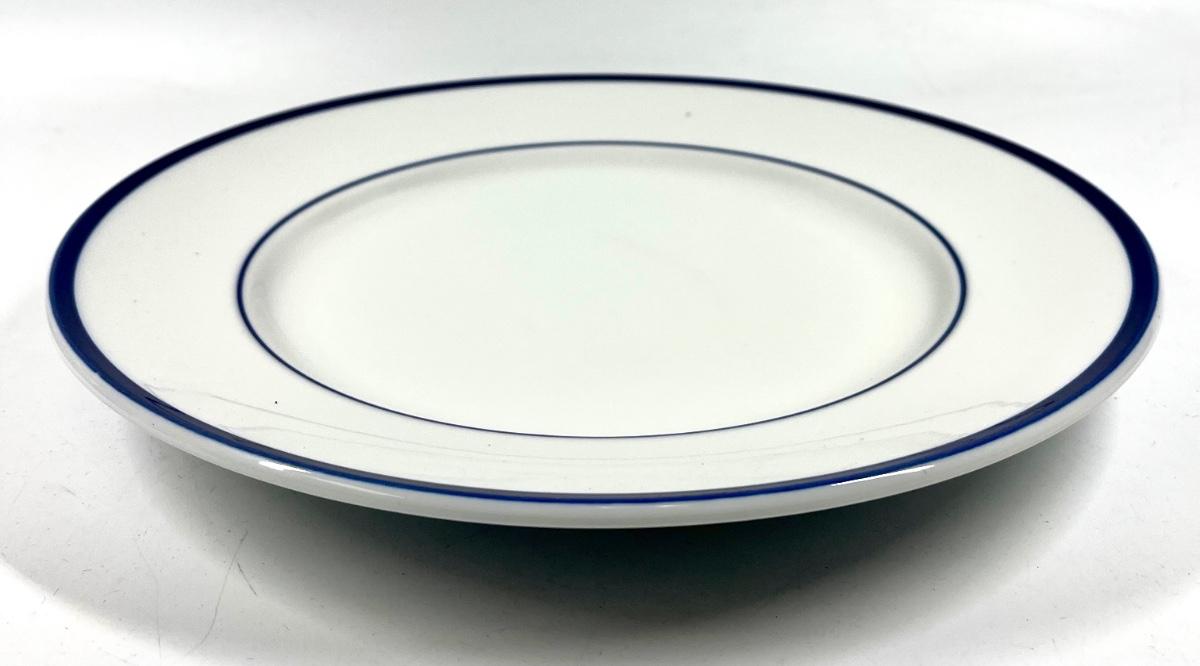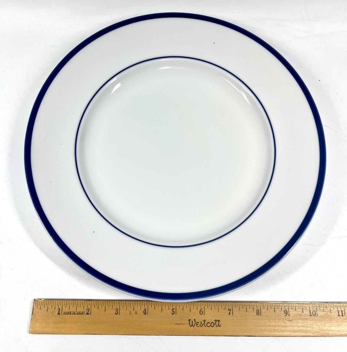 White and navy blue rimmed dinner plate Brasserie Williams Sonoma