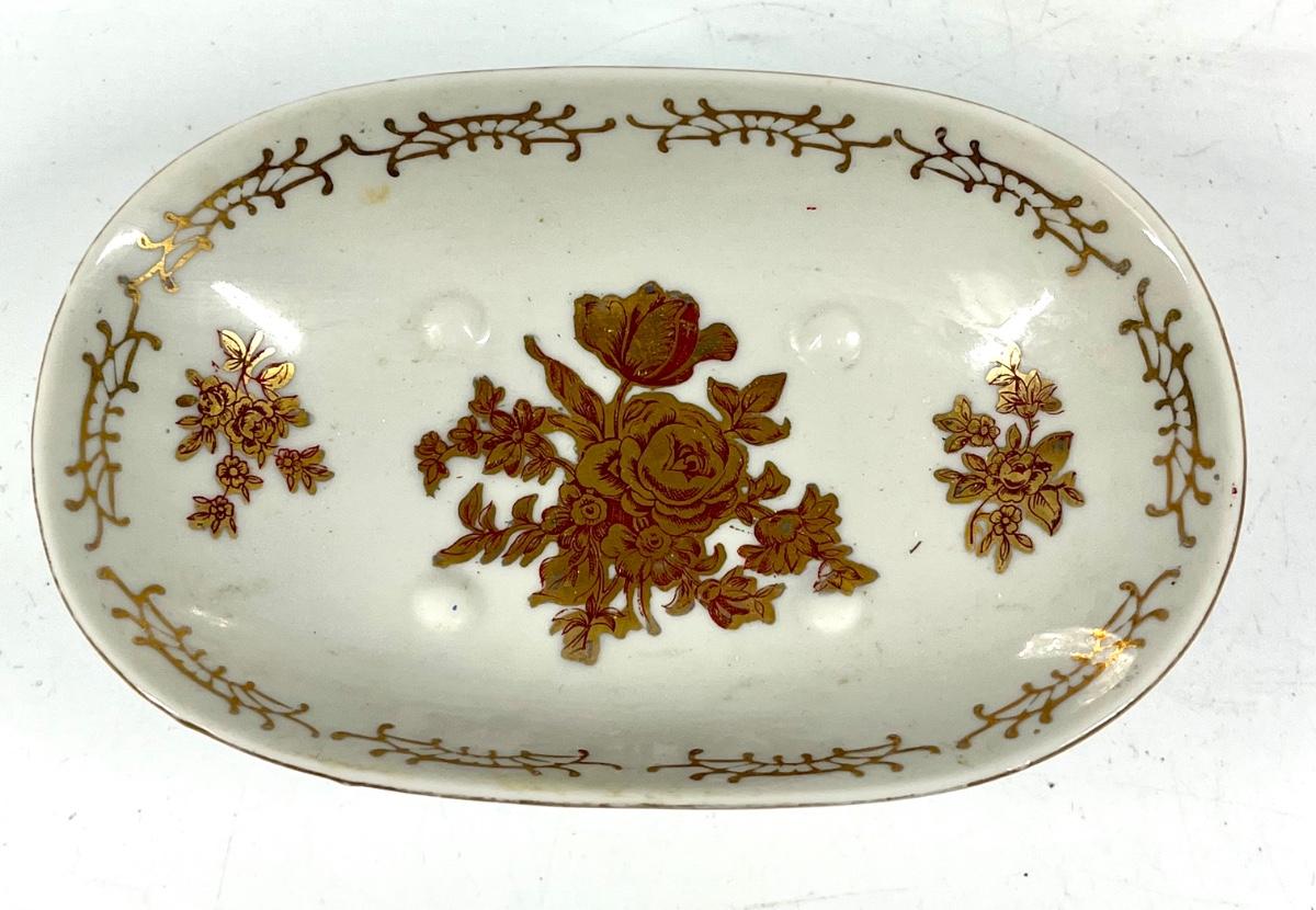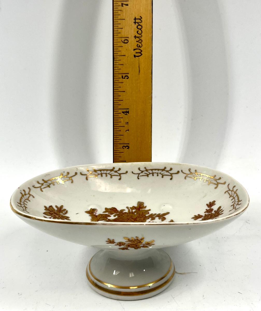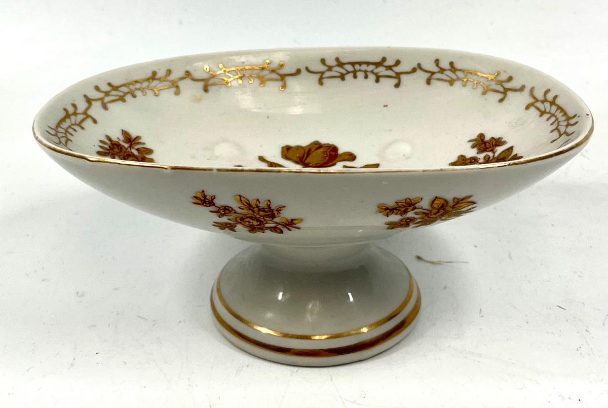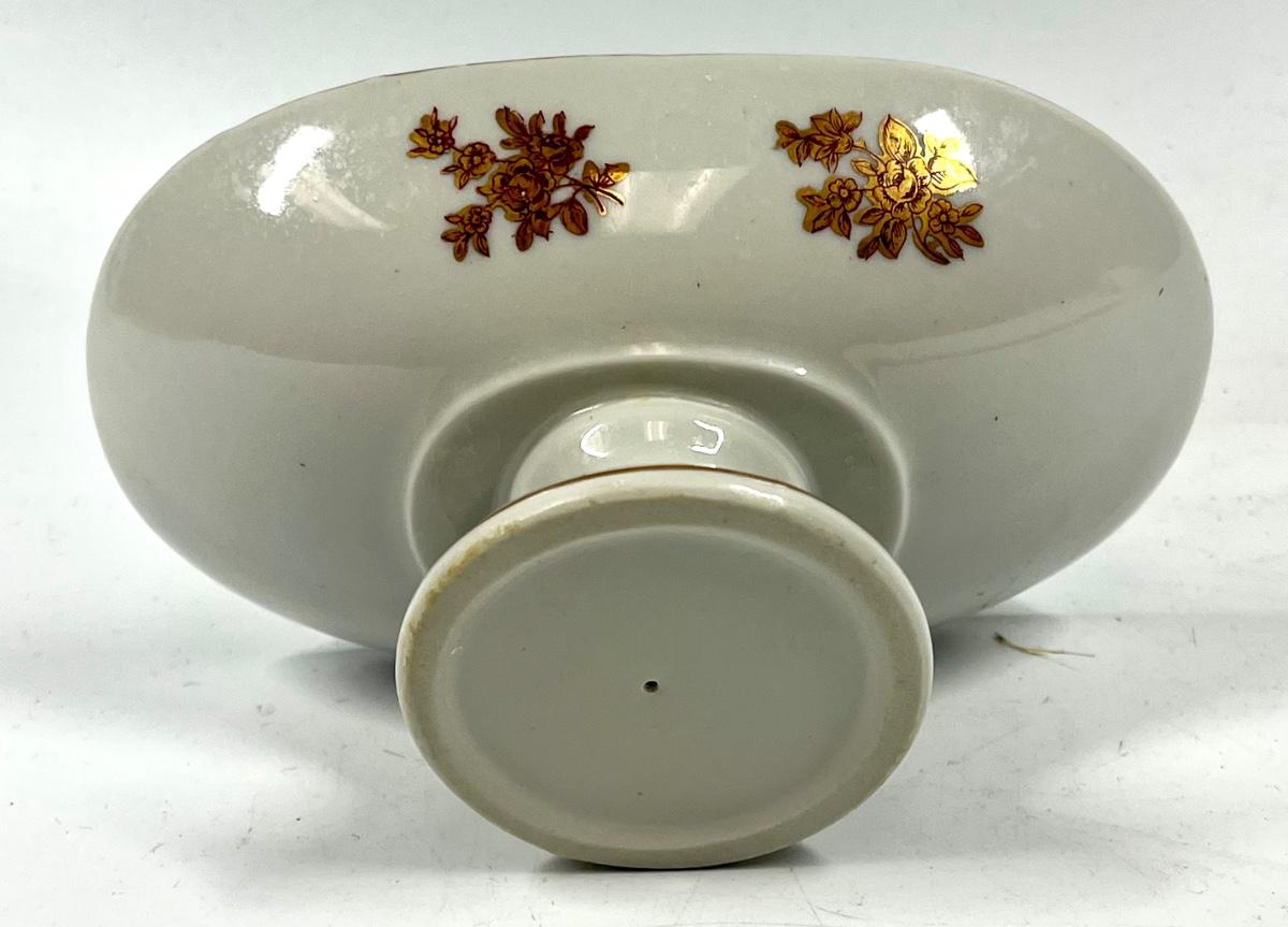 White and red rose pattern pedestal oval dish