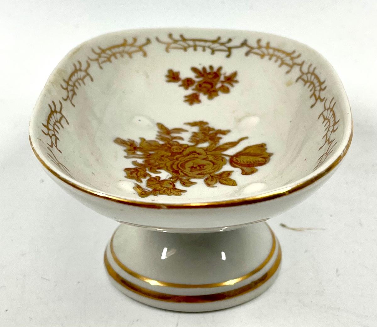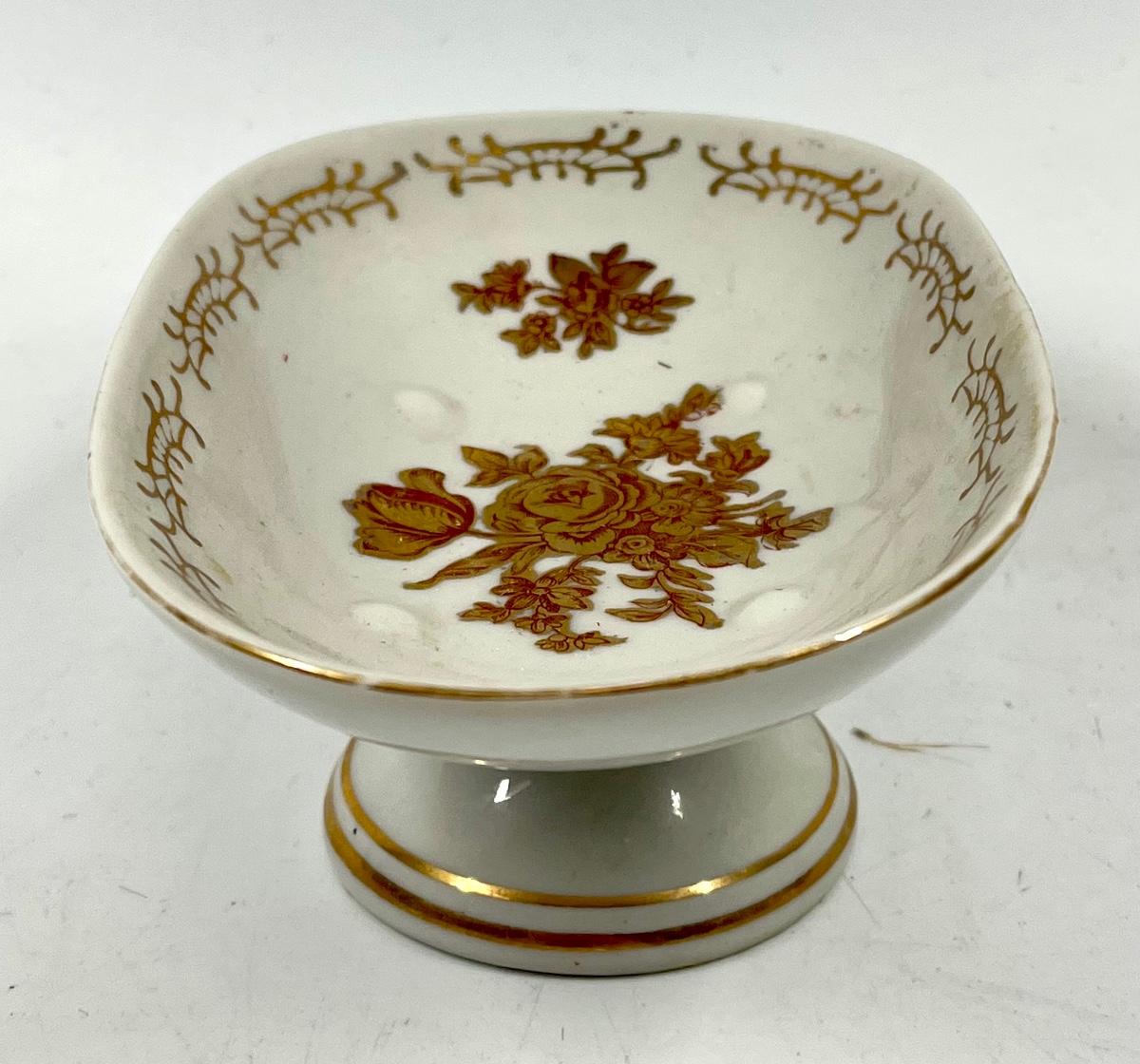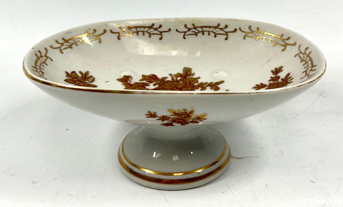 White and red rose pattern pedestal oval dish