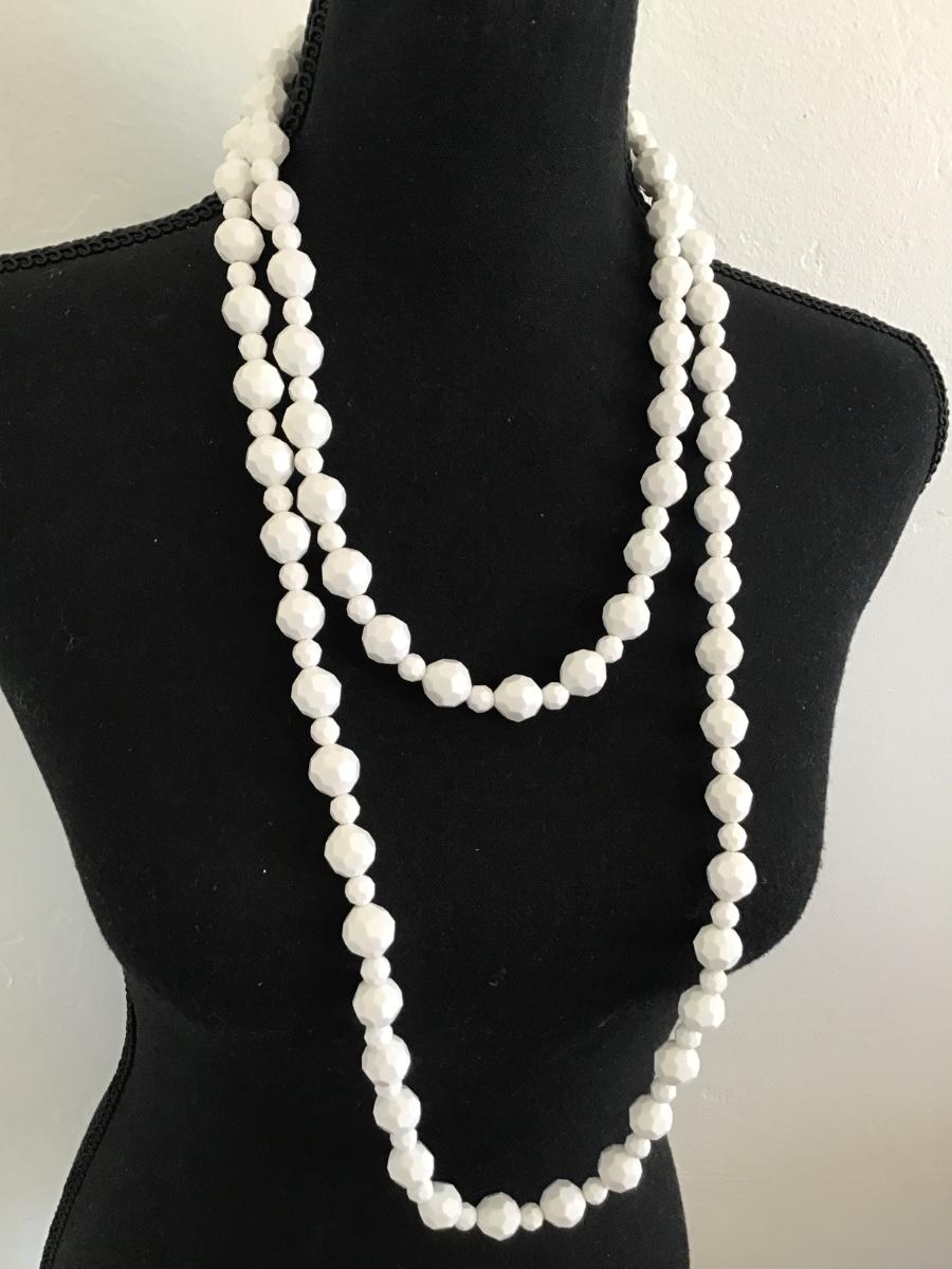 White Bead Double Strand Necklace