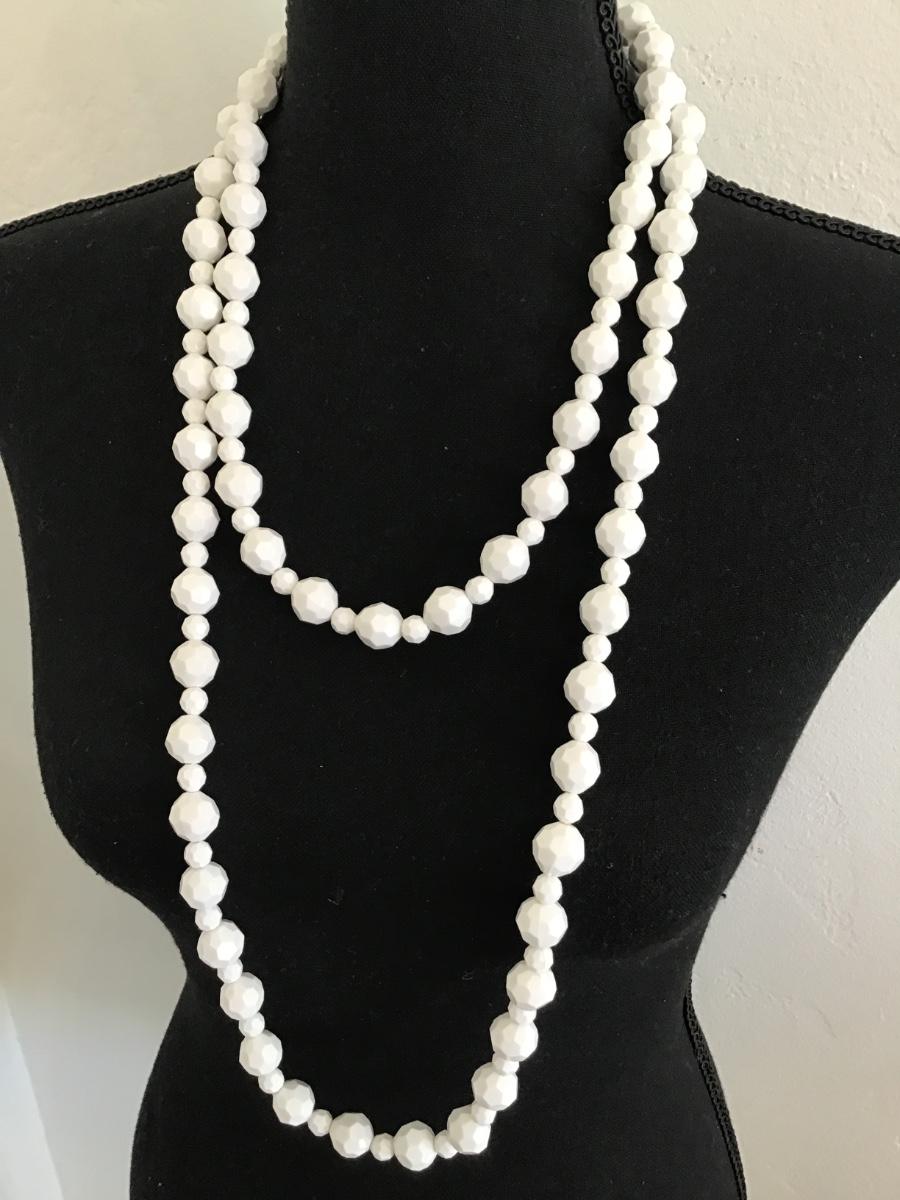 White Bead Double Strand Necklace