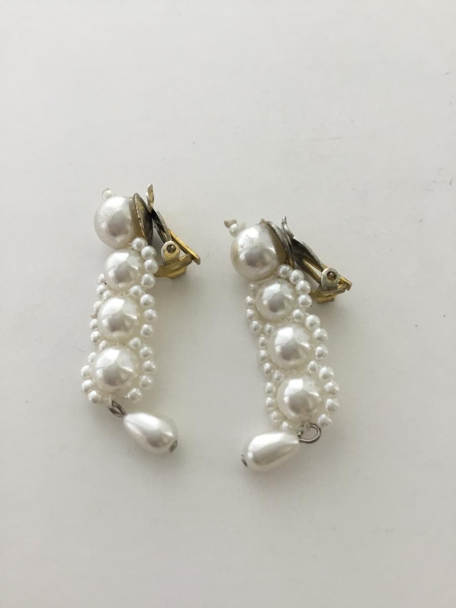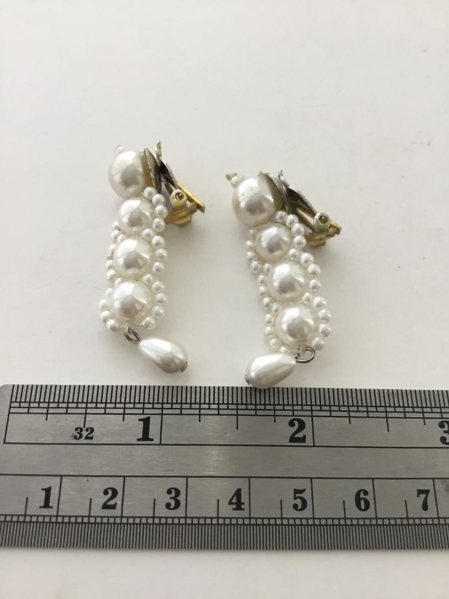 White beaded dangle clip on vintage earrings