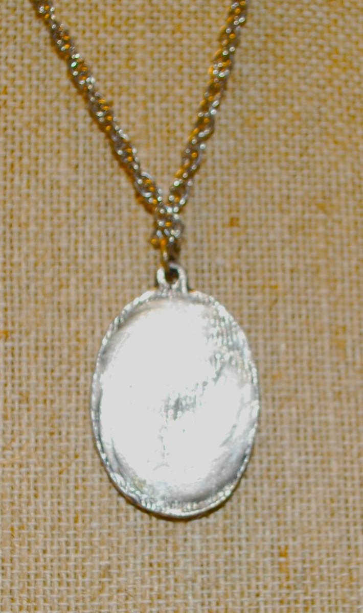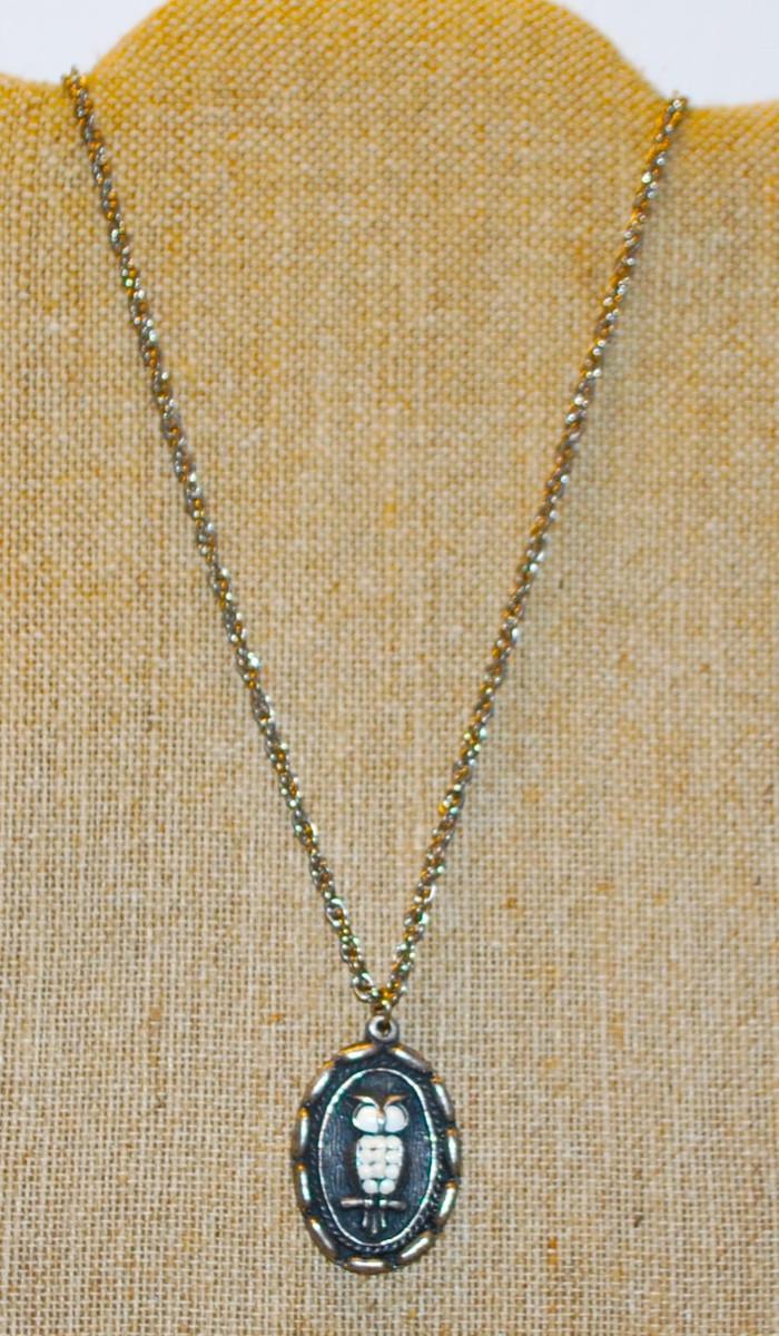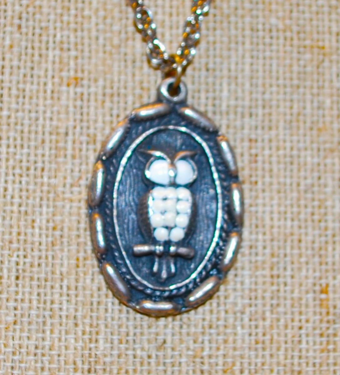 White Beaded Oval PENDANT Owl (1 ½" x 1") Necklace 26"