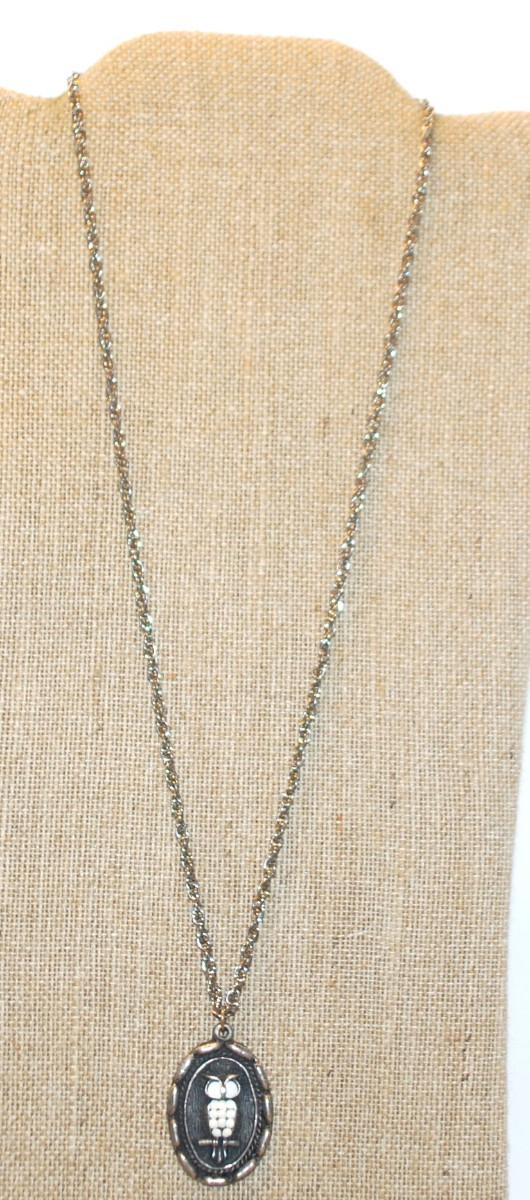 White Beaded Oval PENDANT Owl (1 ½" x 1") Necklace 26" L