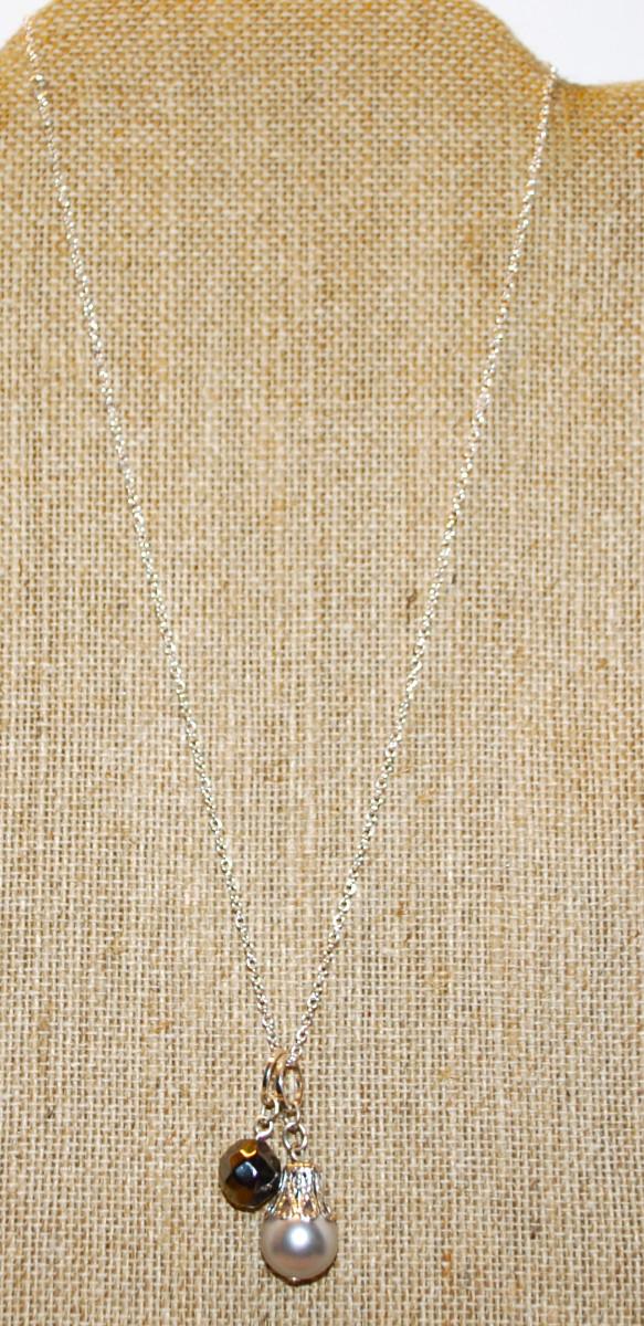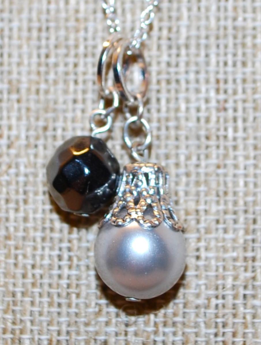 White & Black Spheres PENDANTS (1" + ¾") on a Silver Tone Necklace Chain 17" L