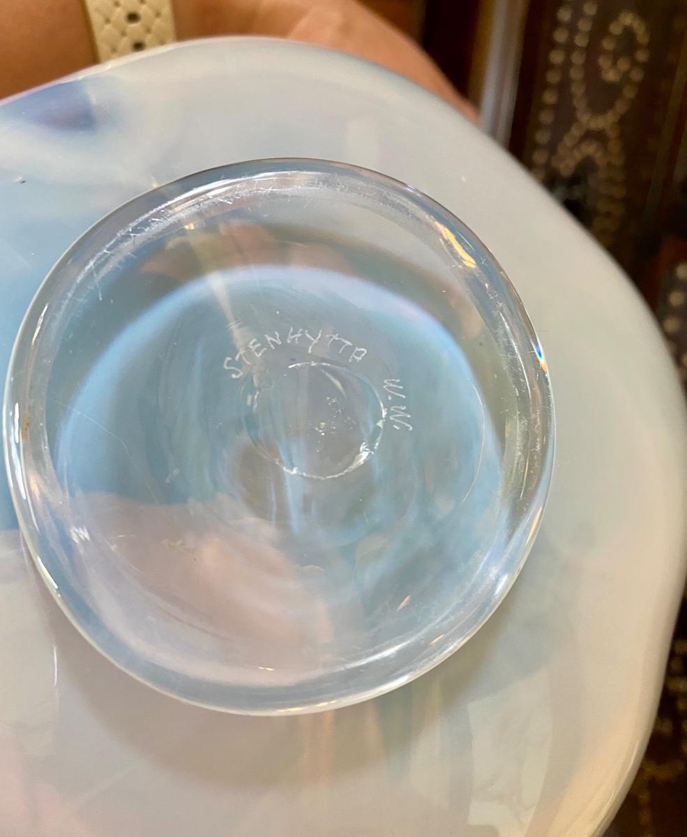 White Blown Glass Bowl with Blue Trim
