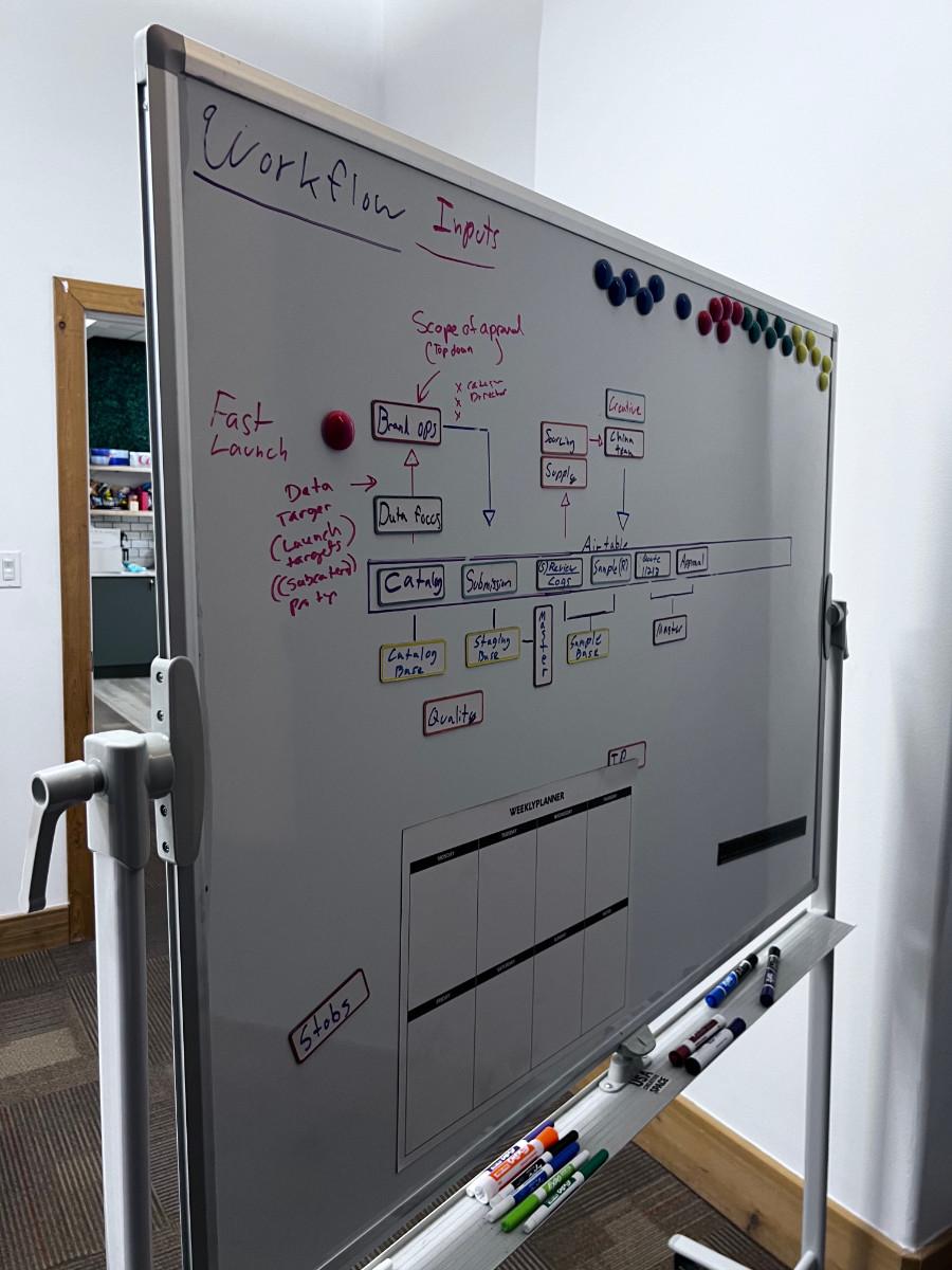 Good Usable Condition. Measures 48 x 36 With Overall Height of Stand 69" Includes some Markers. Bring Help to move down the Stair from the Second floor. There is no Elevator in this historical building.