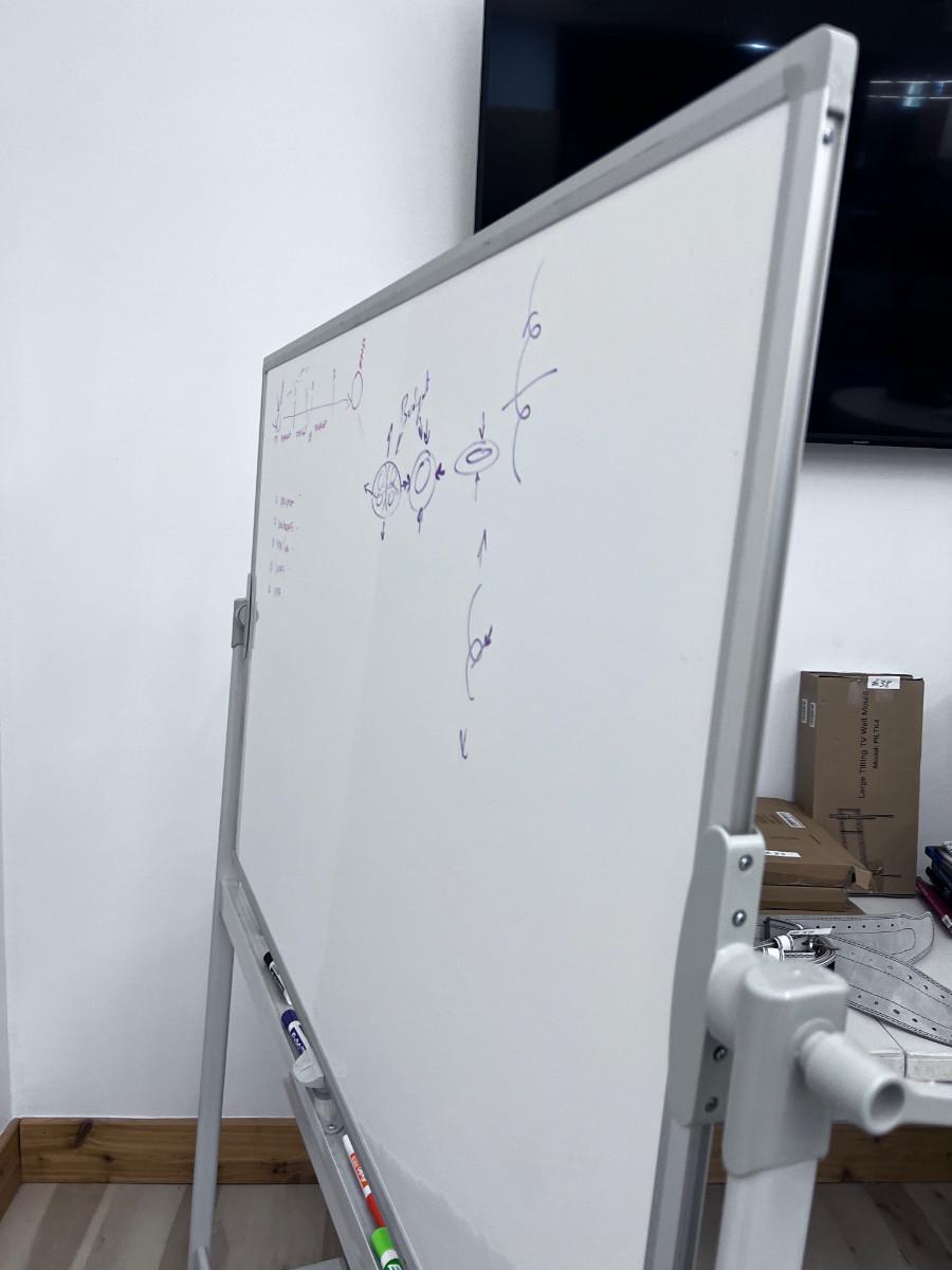 Good Usable Condition. Measures 48 x 36 With Overall Height of Stand 69" Includes some Markers. Bring Help to move down the Stair from the Second floor. There is no Elevator in this historical building.