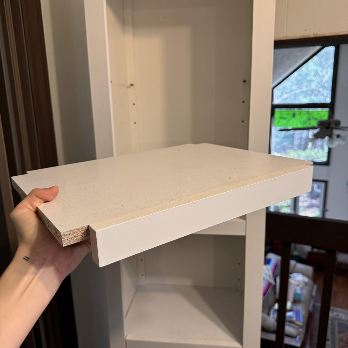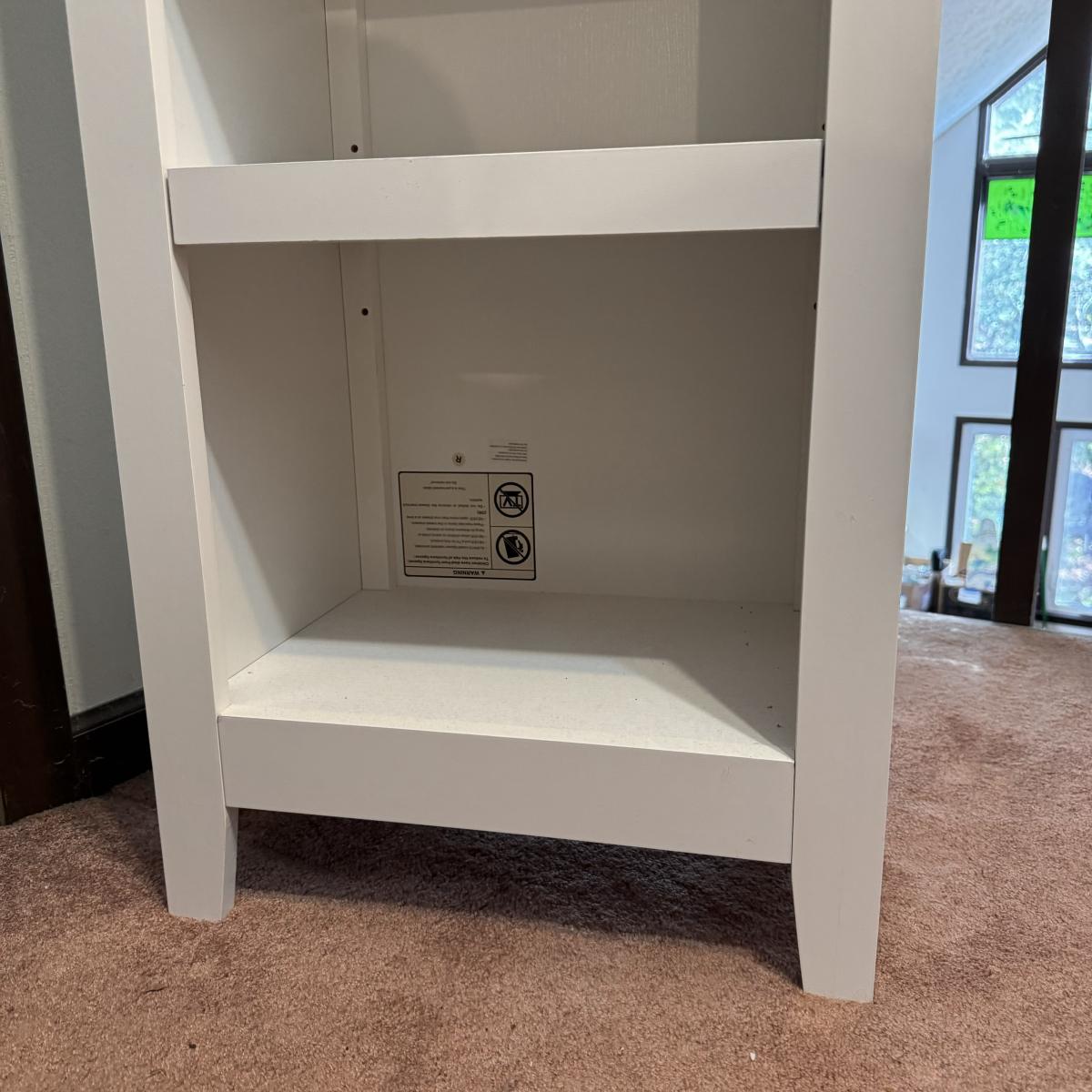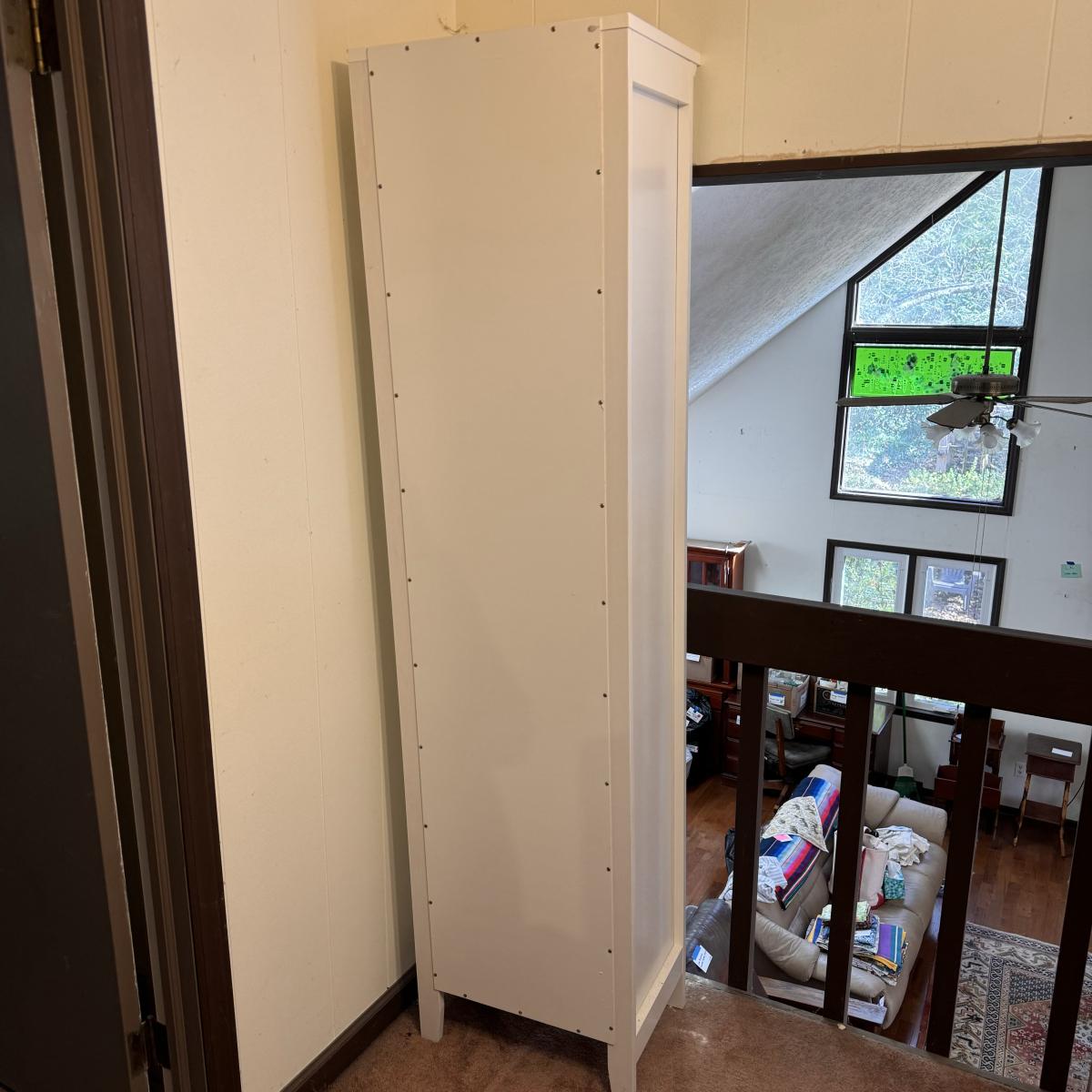 Lot includes one bookcase that is made by Target. It is wooden throughout, but has what appears to be thin plywood pieces on the sides and back. The shelves are inserted via pegs and are adjustable - see pictures. It measures 18” x 12” x 72”H. Local pickup only. Winning bidder must bring assistance to help move and load this item due to its weight and/or size. Item is located up a flight of stairs.