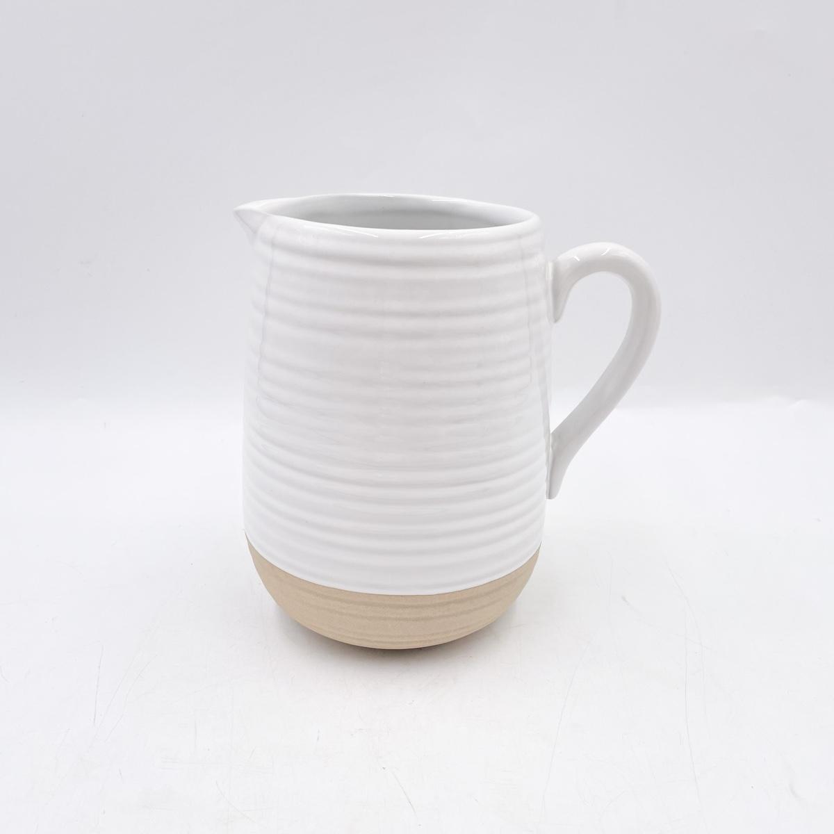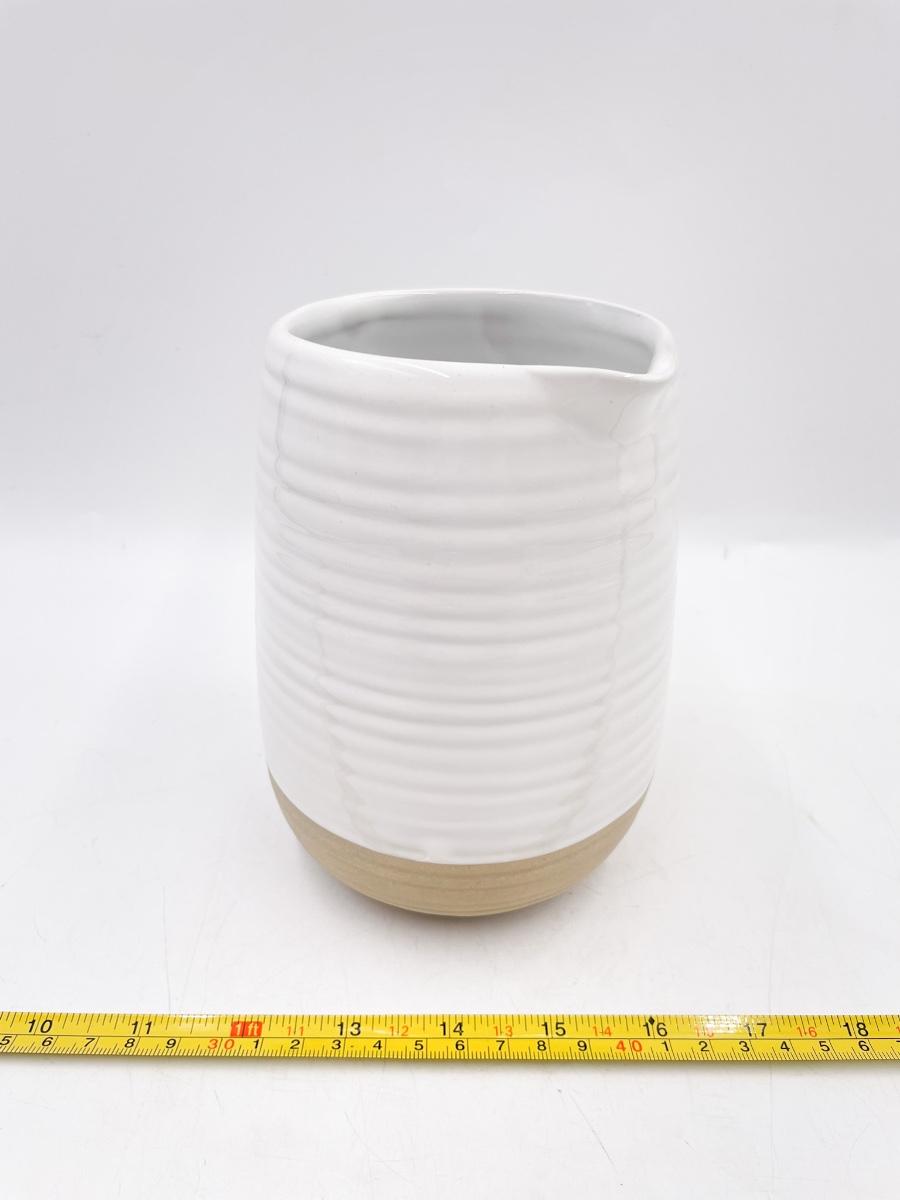 WHITE & BROWN 6” FARMHOUSE POTTERY PITCHER