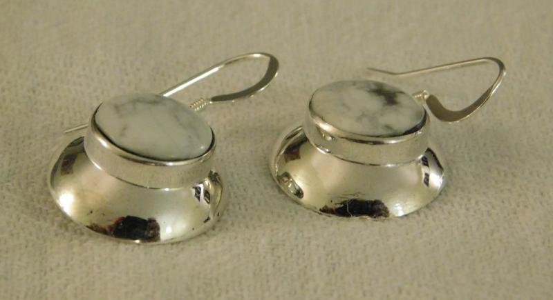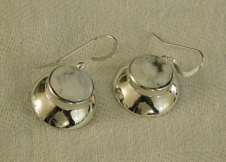 White Buffalo Turquoise Round Earrings Set in Sterling with shepherd hook backs