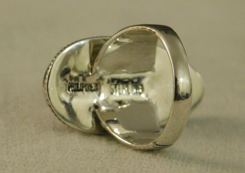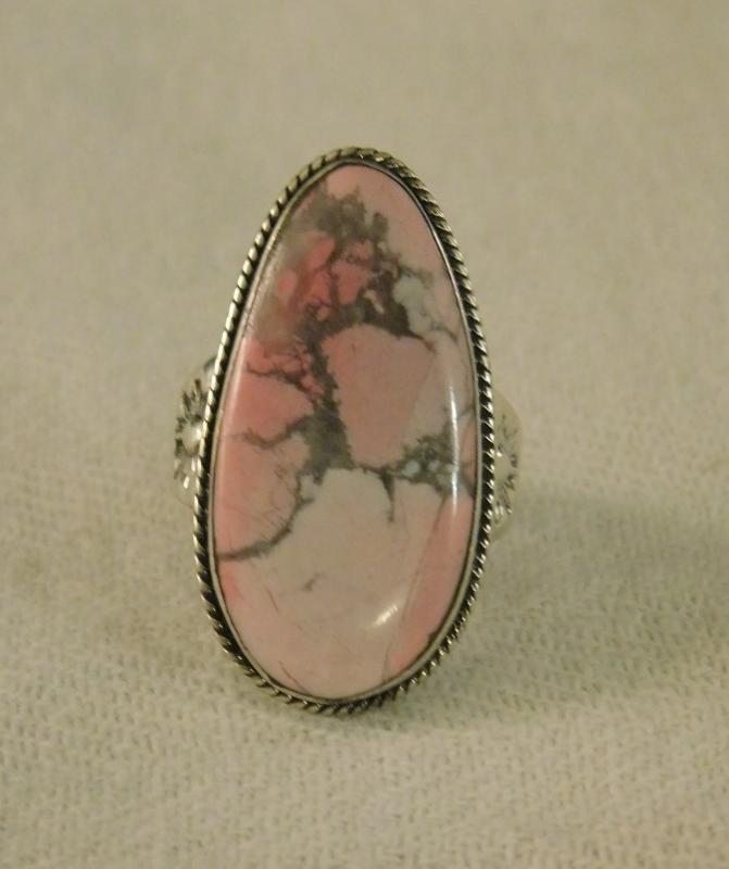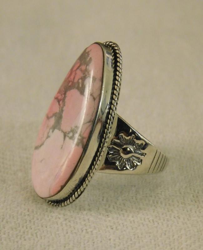 White Buffalo Turquoise Size 8 Ring with Pink Color Set in Sterling Silver