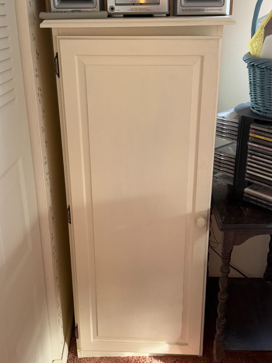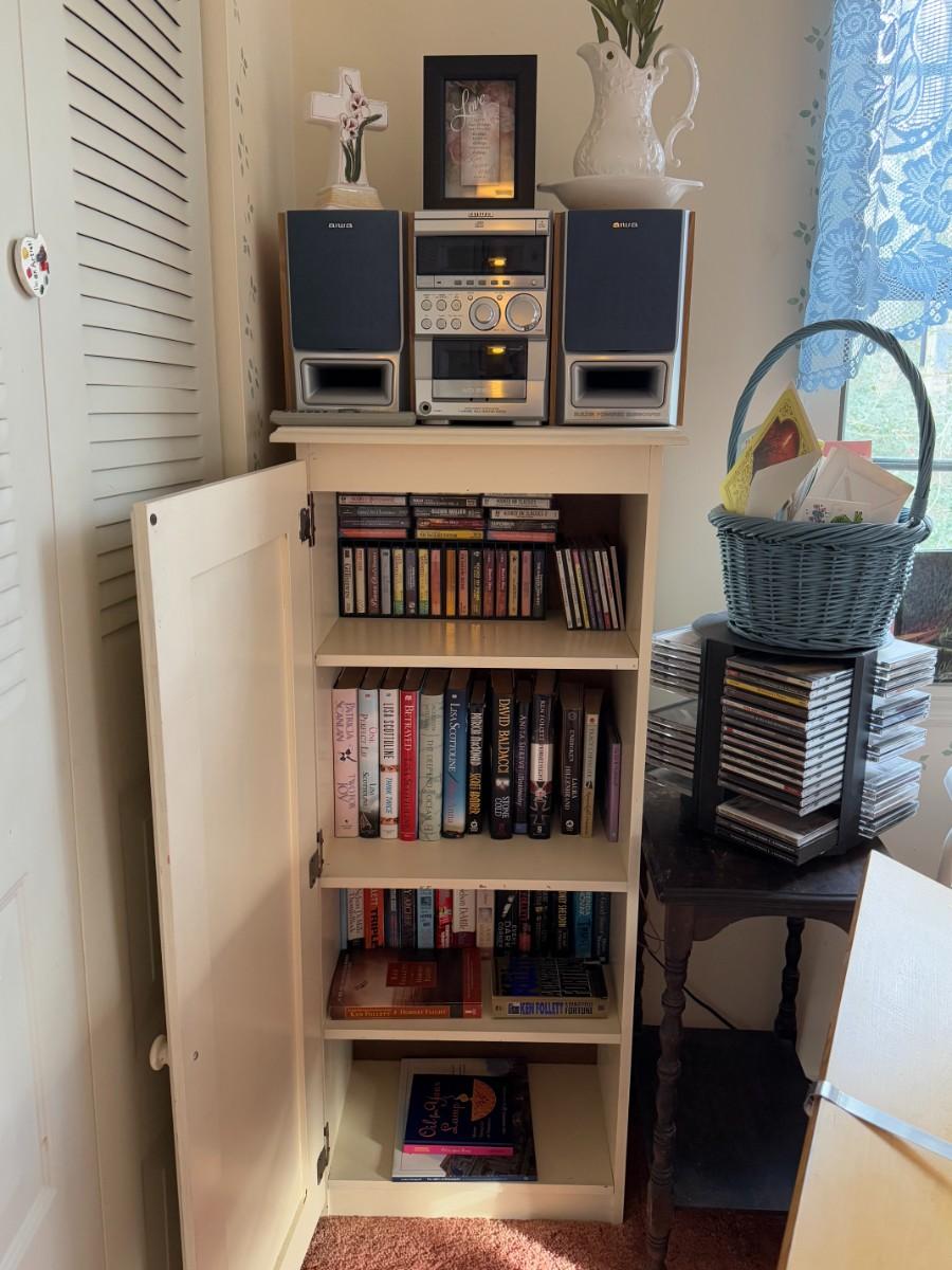 White Cabinet and Aiwa Stereo Lot