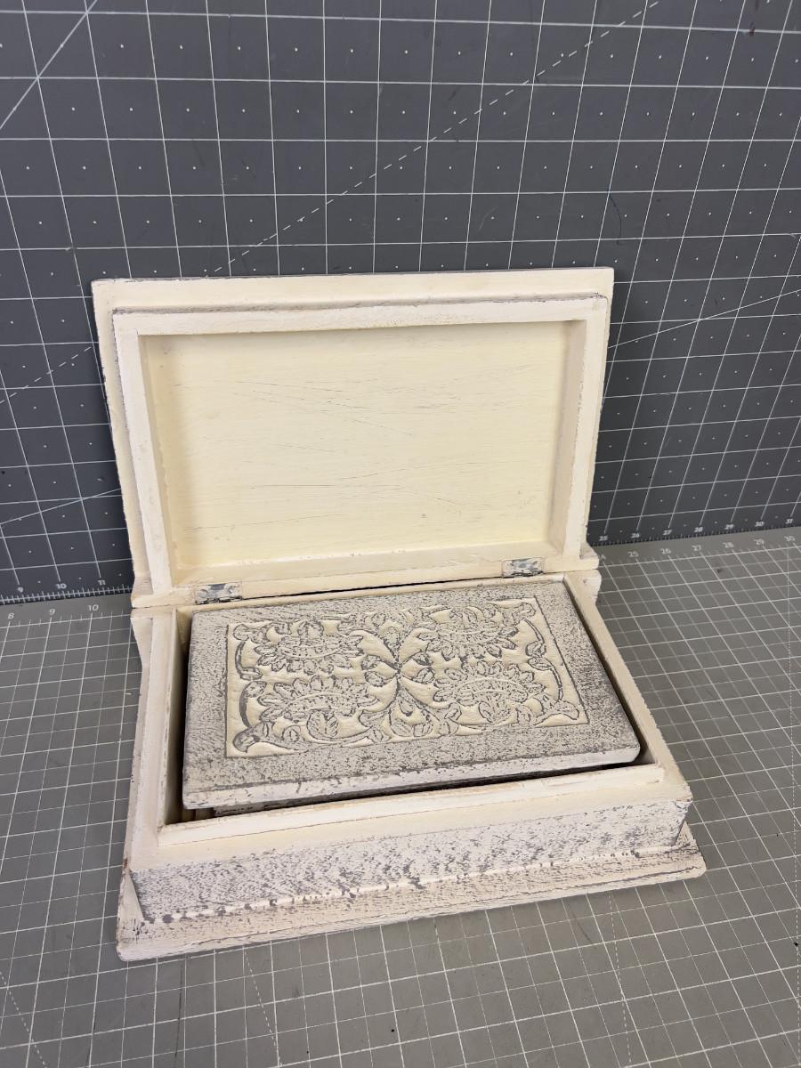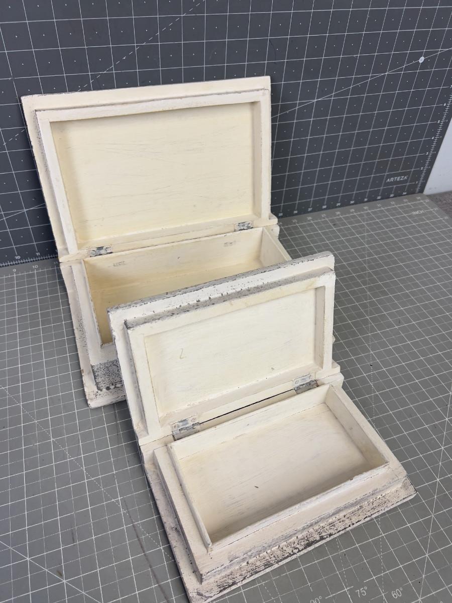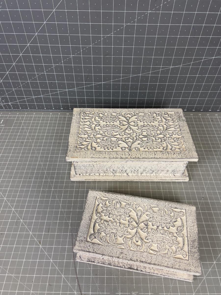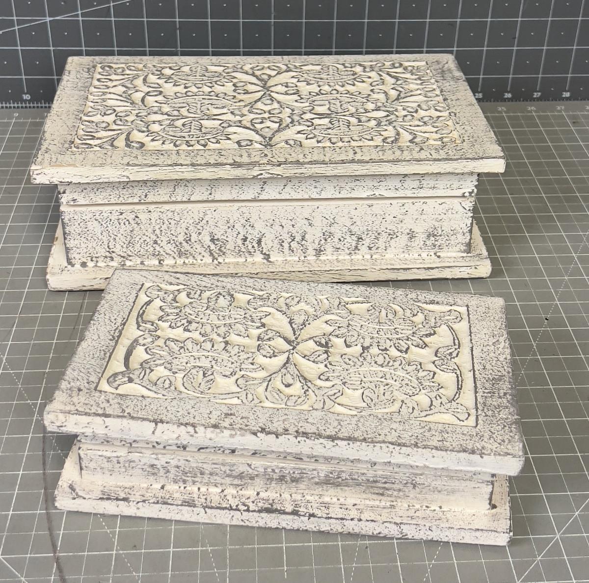 White Carved Wood Boxes, nested