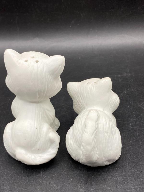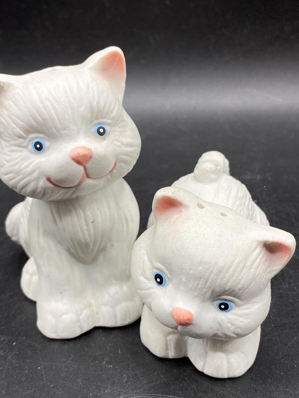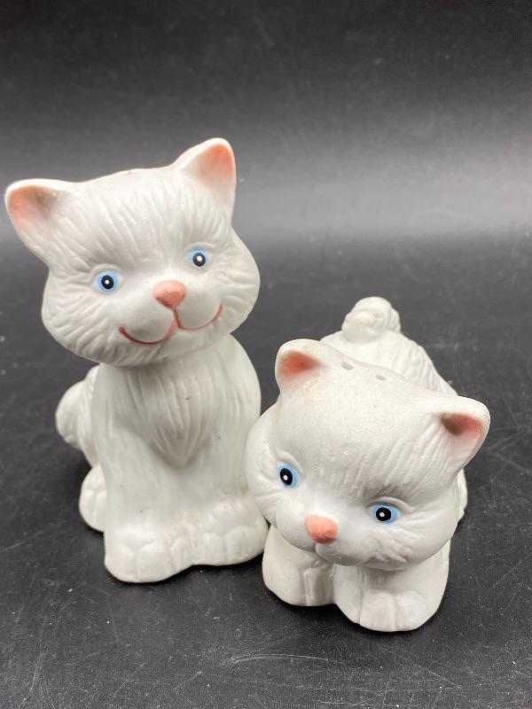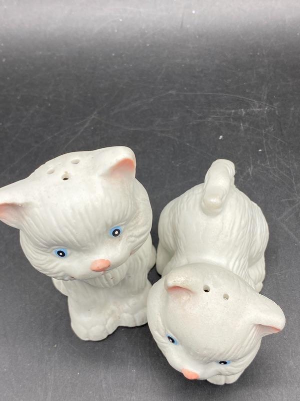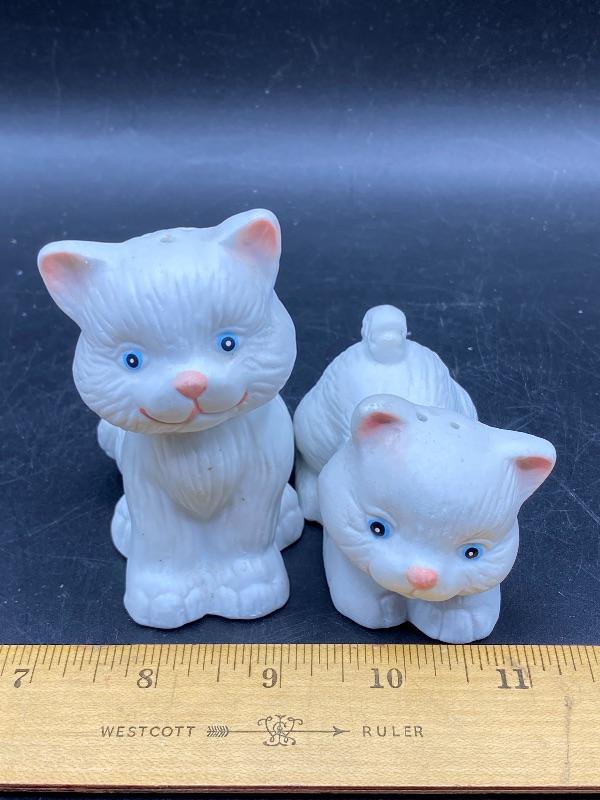 White cat salt & pepper shakers. Cute kittys, good condition. Both have the stoppers in the bottom.