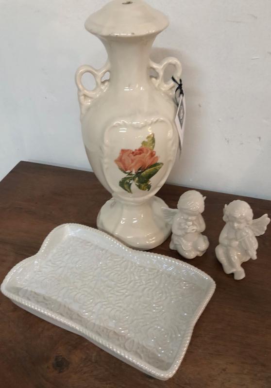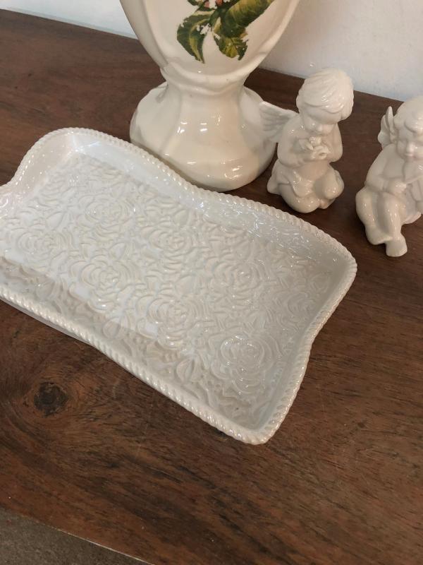White Ceramic Collection Tray Angels