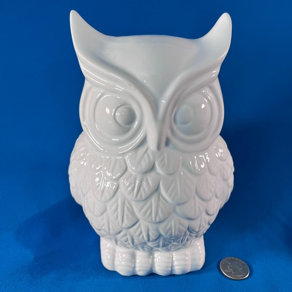 WHITE CERAMIC OWL COIN BANK
