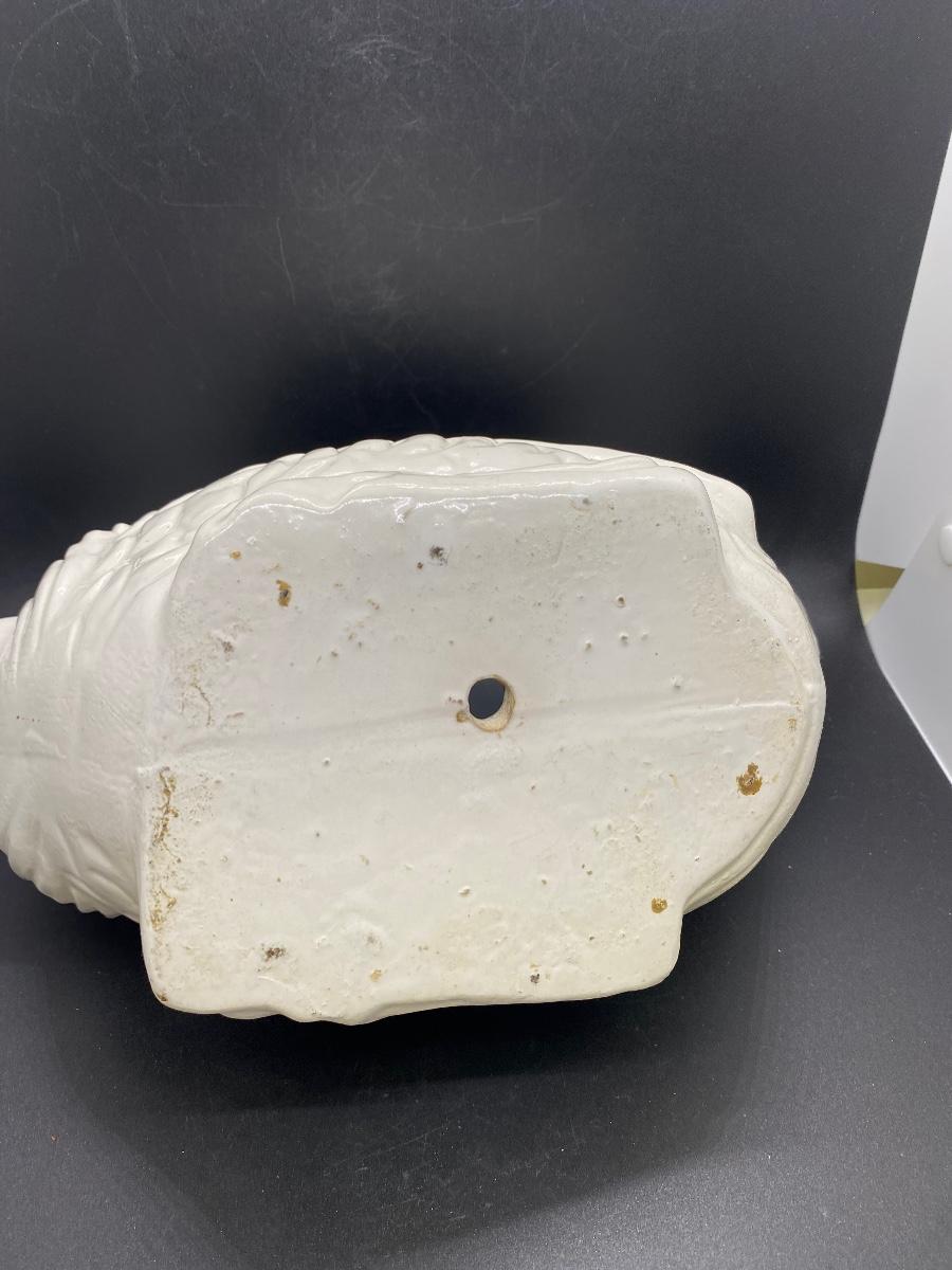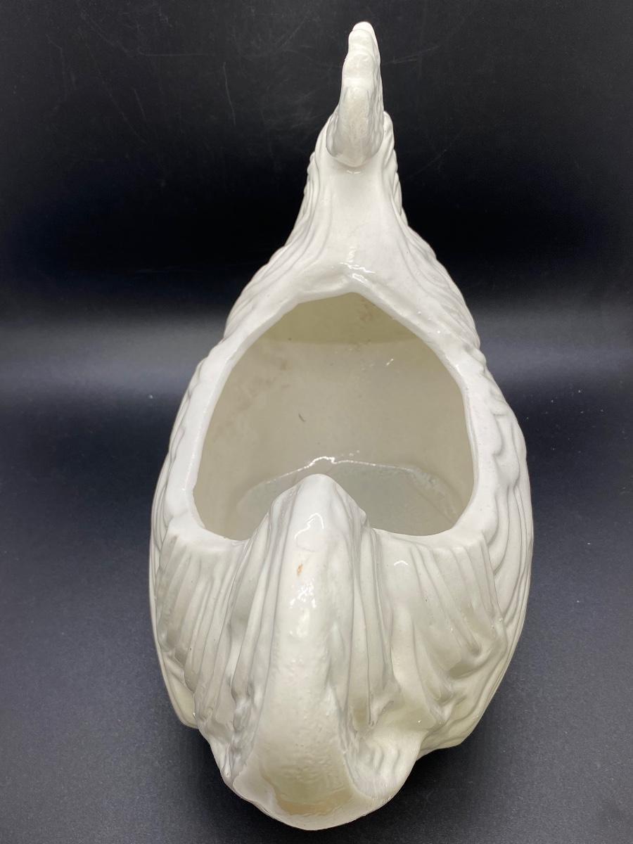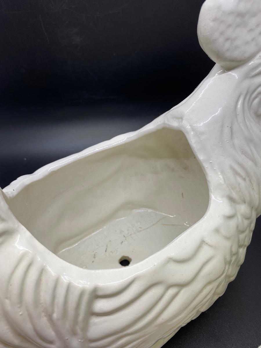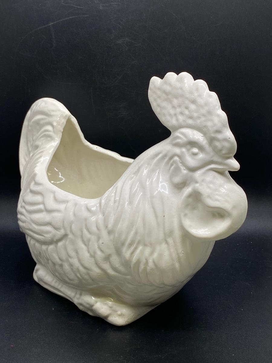 White ceramic rooster planter. Good condition, no chips. About 12" length. No maker marks.