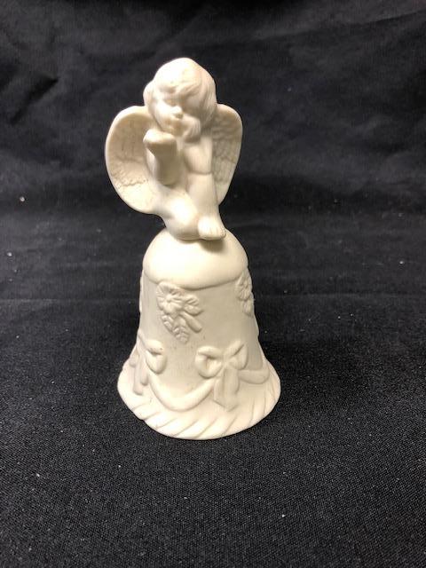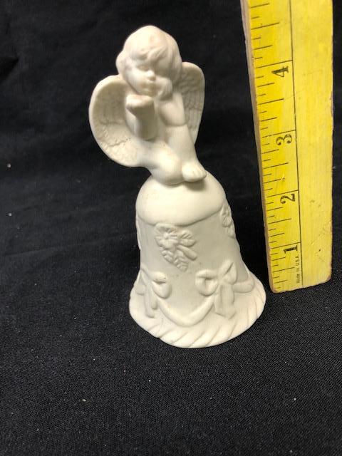 Cute Cherub Bell. White porcelain. Under 5" tall.