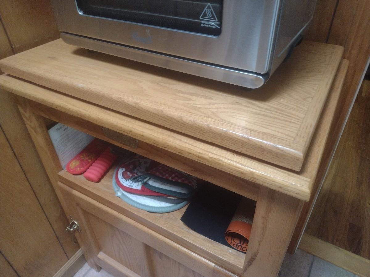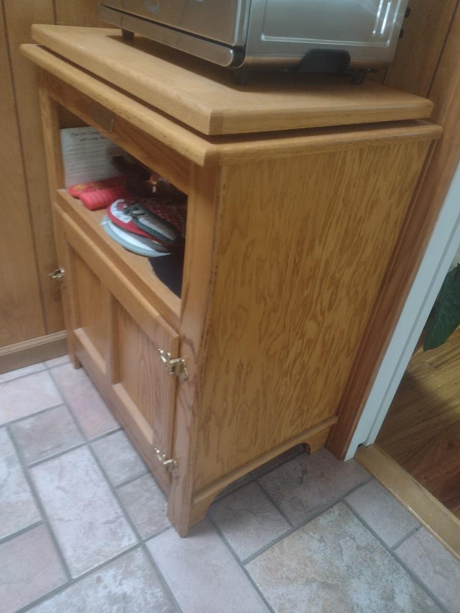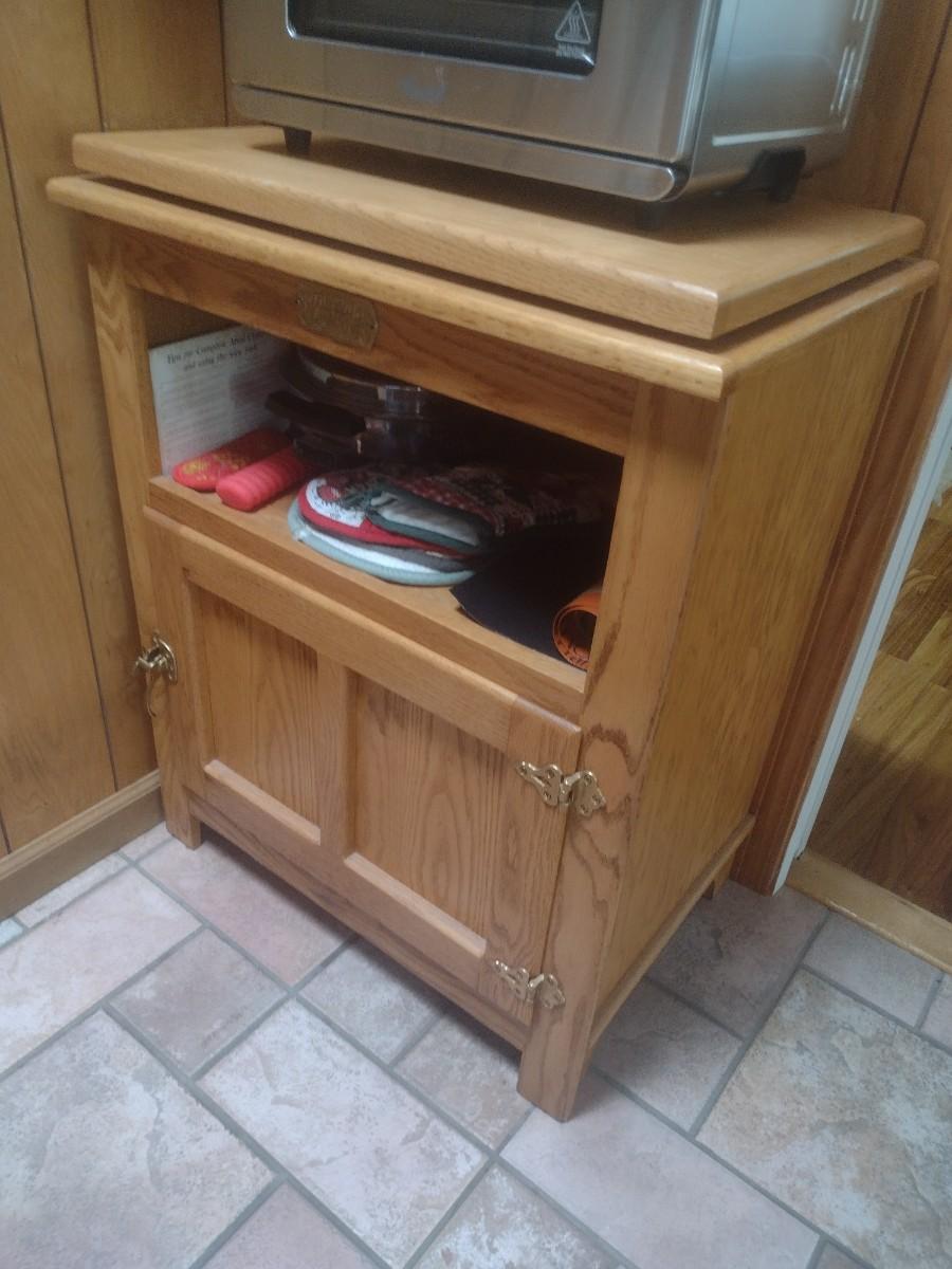 White Clad Oak Wood Microwave Table with Swivel Top (No Contents)