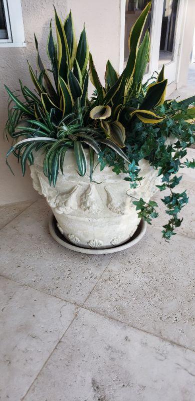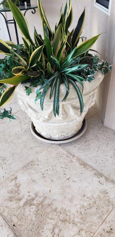 #1 White Concrete Planter with Plant
