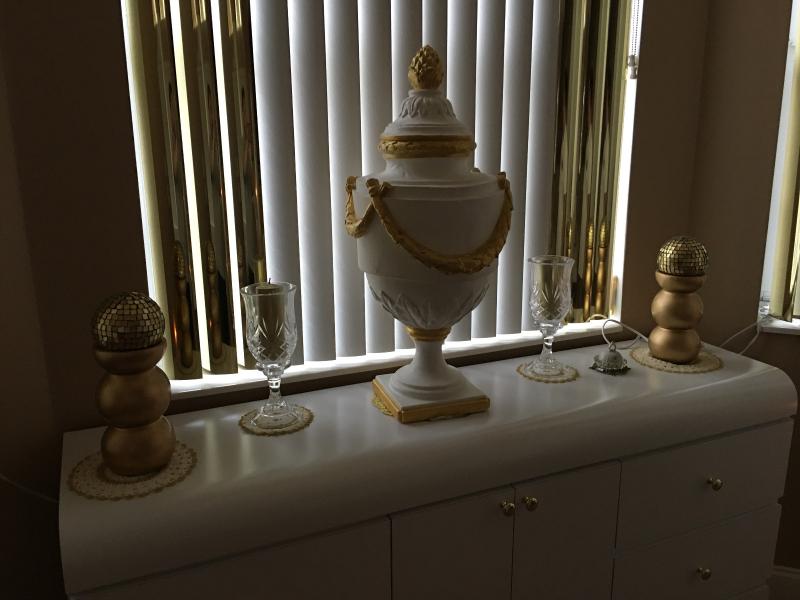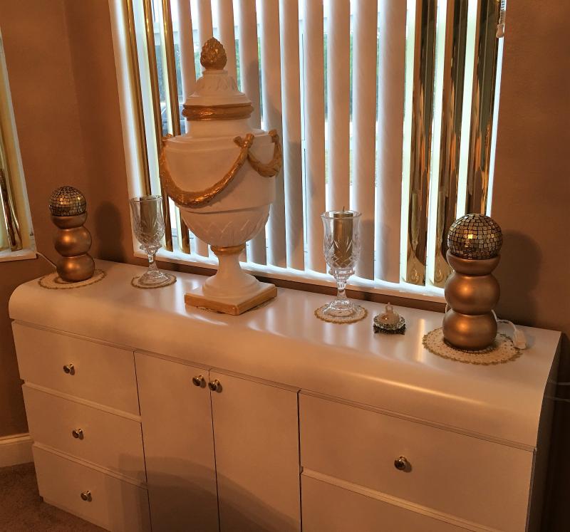 All contents of this buffet are included in this lot as well as the decorative items on top of the piece