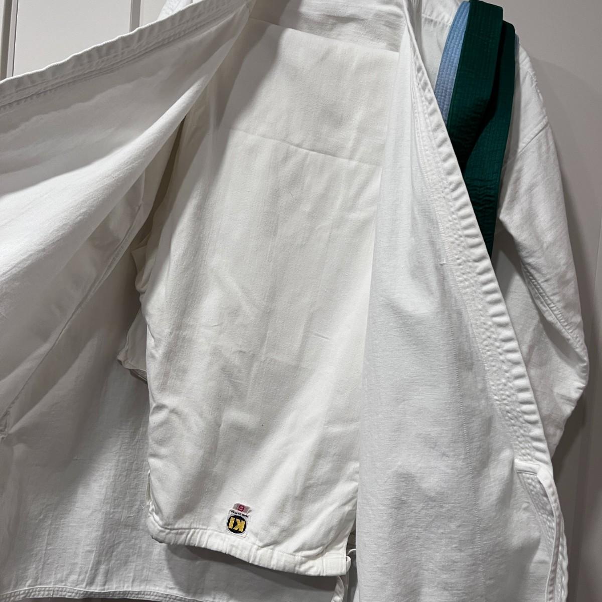 WHITE COTTON ADULT KARATE GI UNIFORM SIZE 6 WITH 2 BELTS BLUE, GREEN
