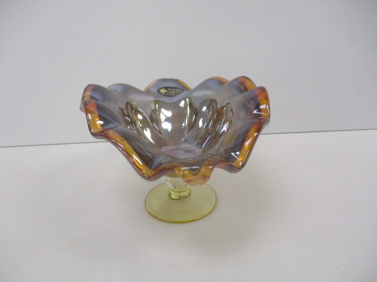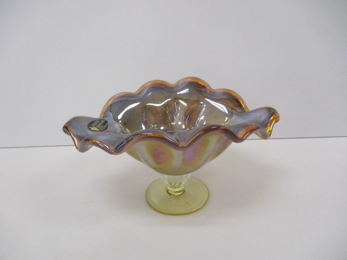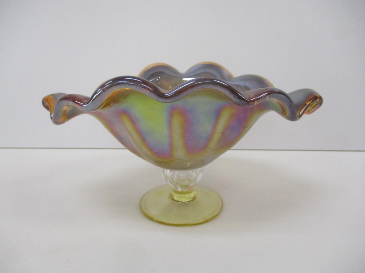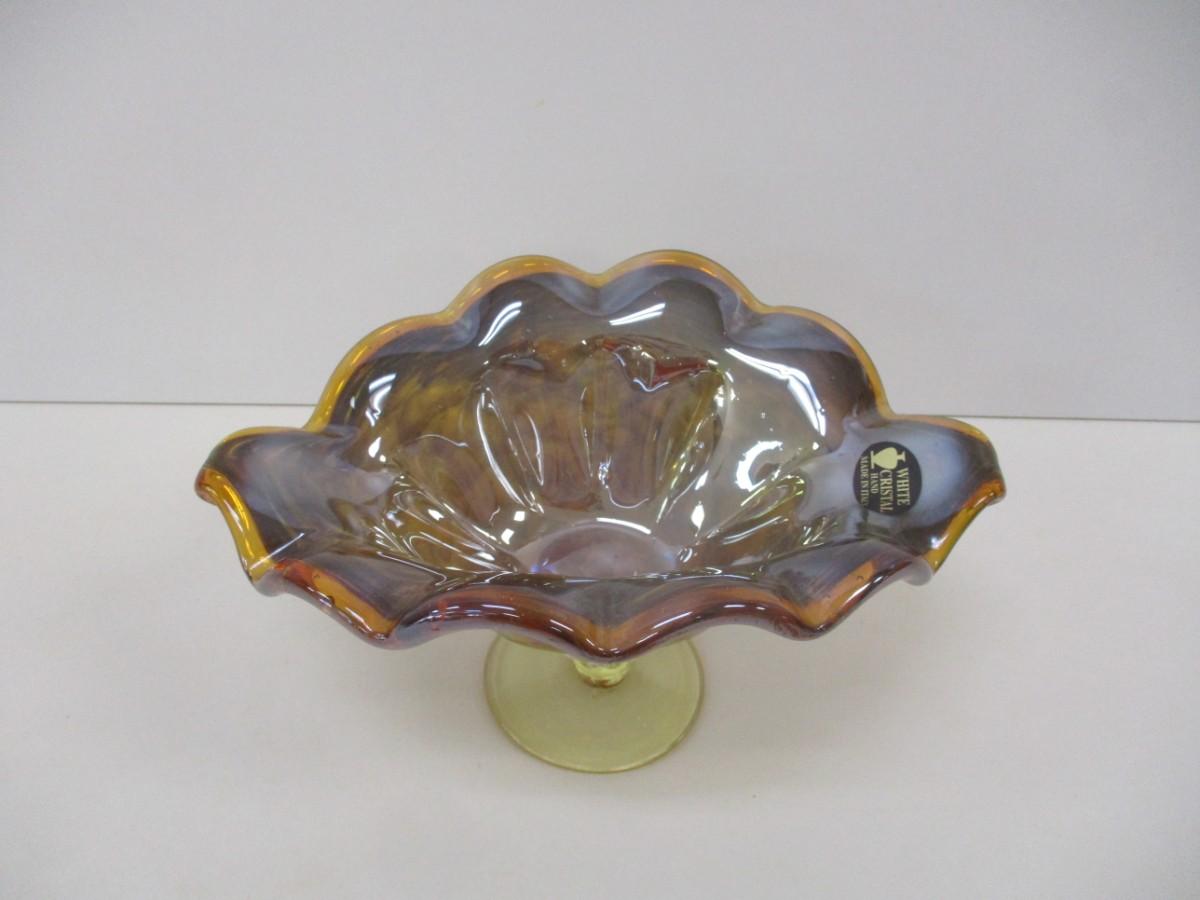 White Crystal Handmade In Italy Iridescent Bowl On Pedestal Approx 5 5/8" Tall