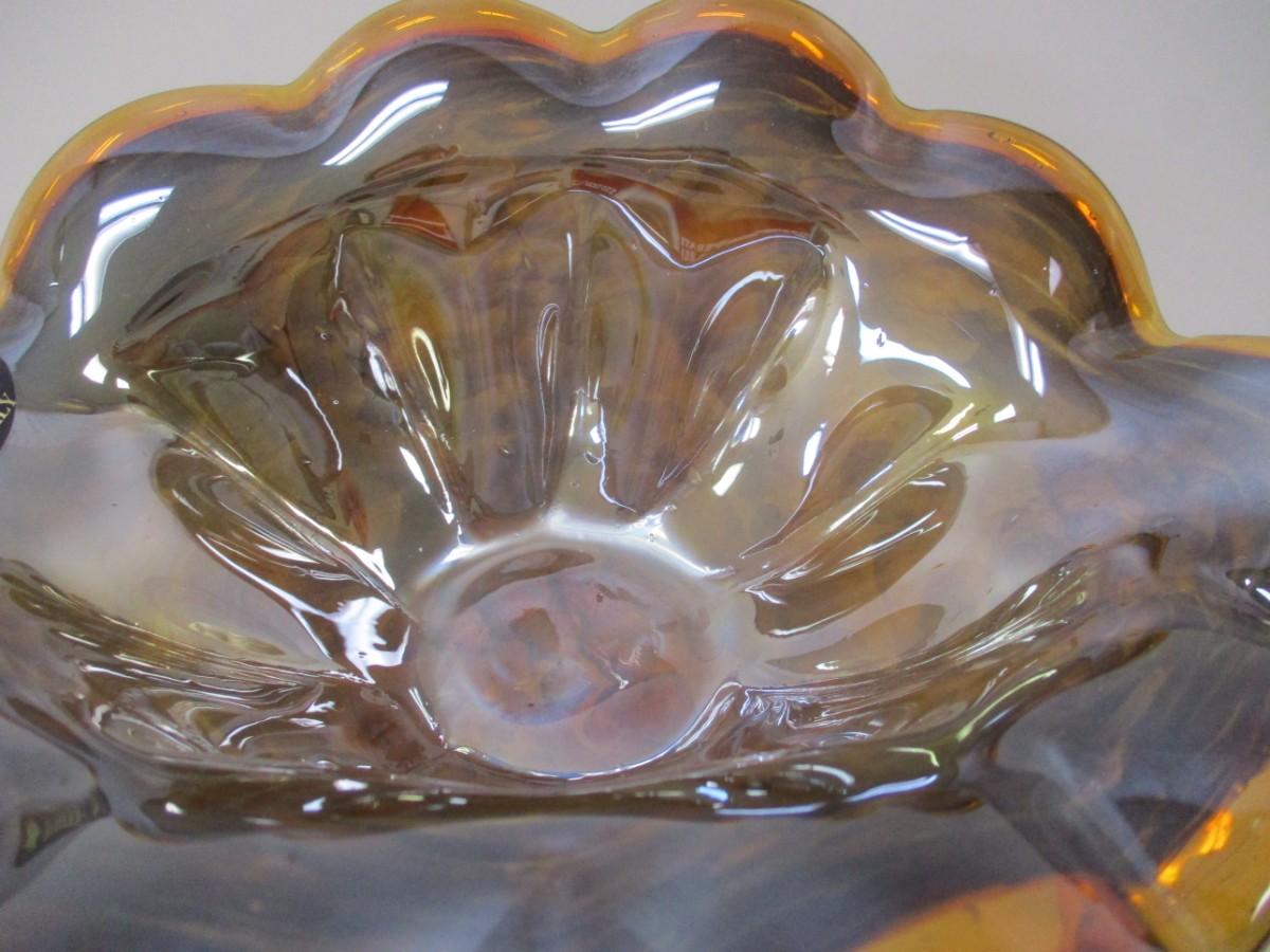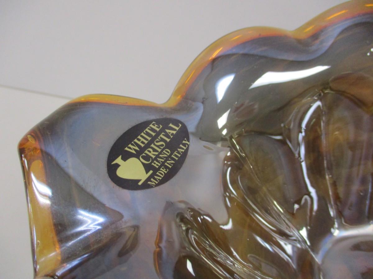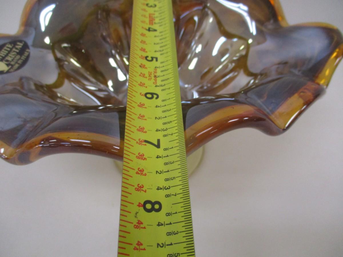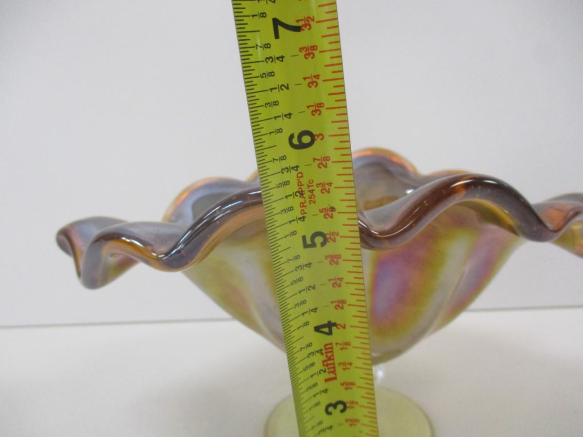 White Crystal Handmade In Italy Iridescent Bowl On Pedestal Approx 5 5/8" Tall