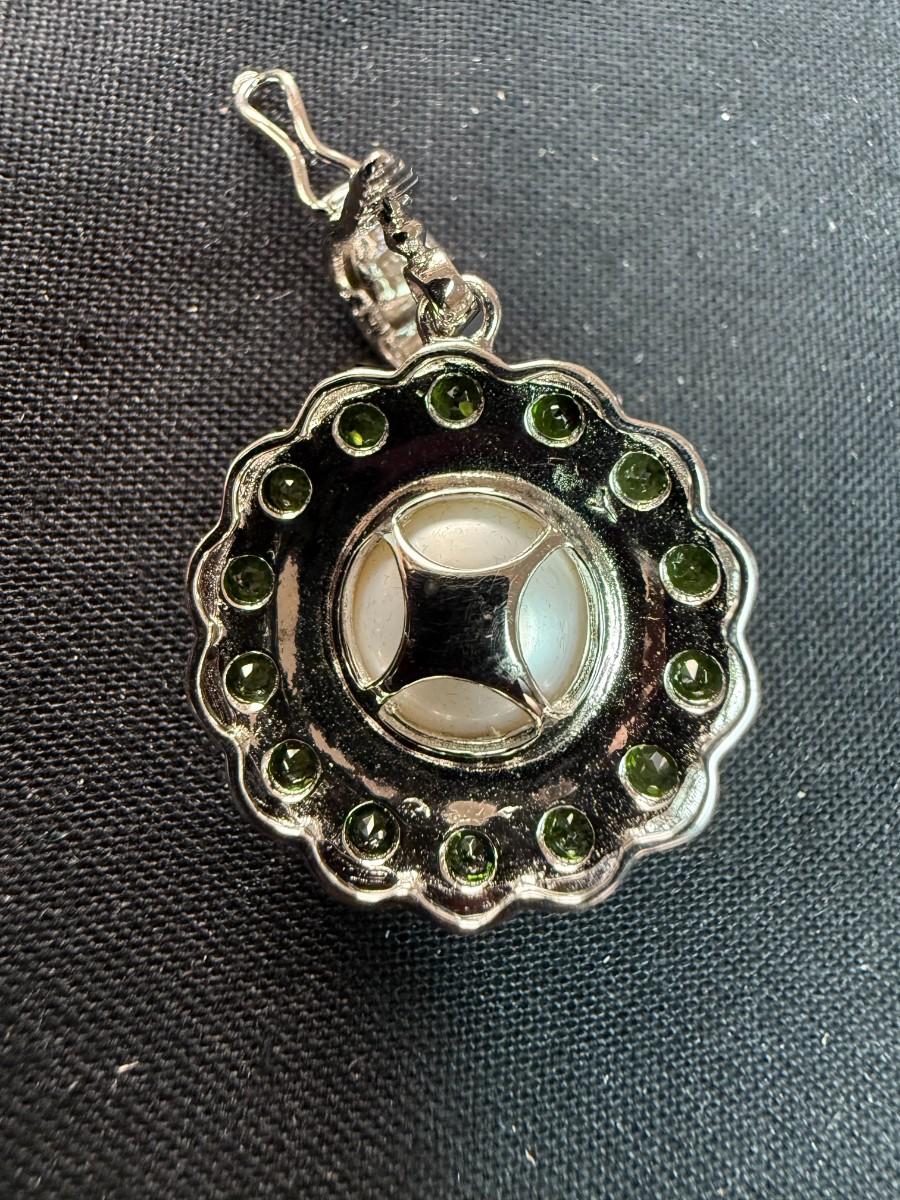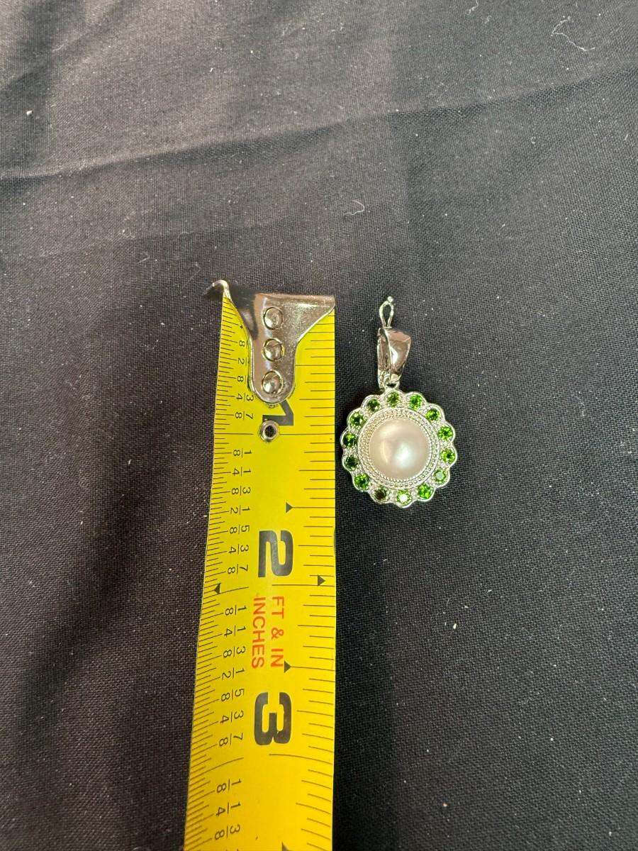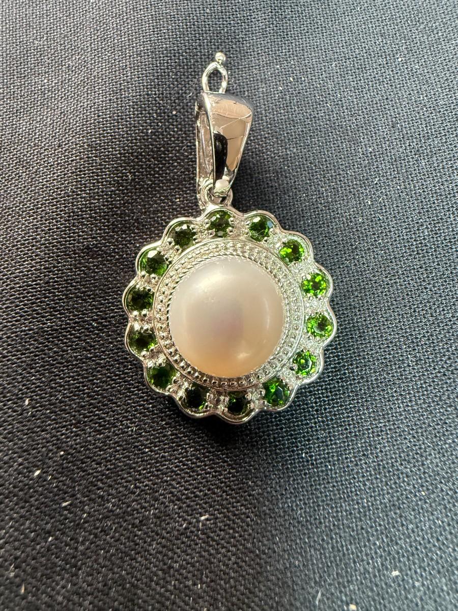 White Cultured Freshwater Pearl With Chrome Diopside Rhodium Over Sterling Silver Enhancer