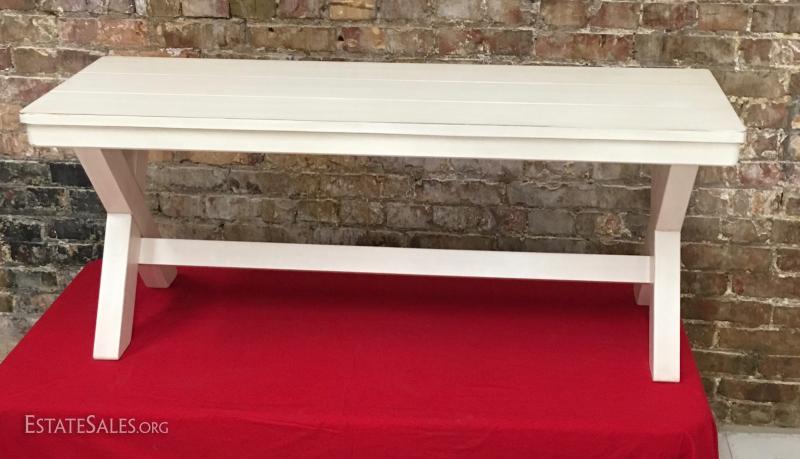 White Dining Table Kitchen Bench Seat 45" by 15" 18" tall. Solid wood , white paint in near mint condition.